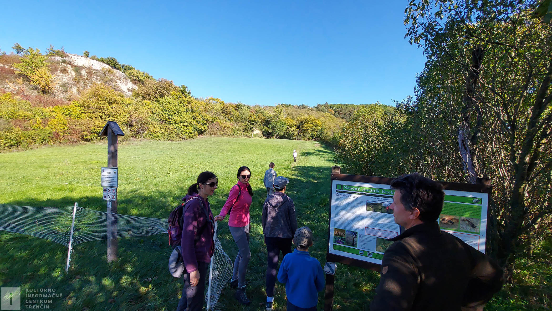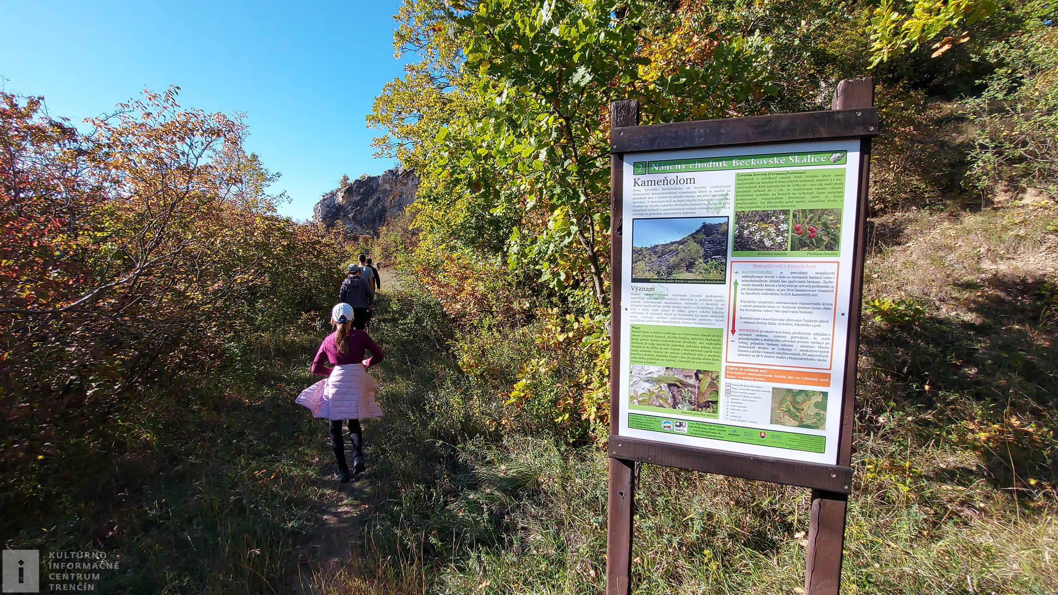 Po dôkladnom prezretí diaľav a Beckovského hradu z ďalšej vyhliadky, pokračujeme náhornou plošinou smerom na východ. Ideme stále po vyšliapanom úzkom chodníčku, ktorý nás dovedie k ďalšiemu infopanelu.