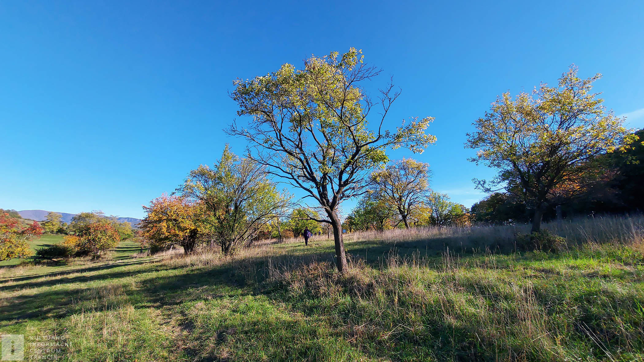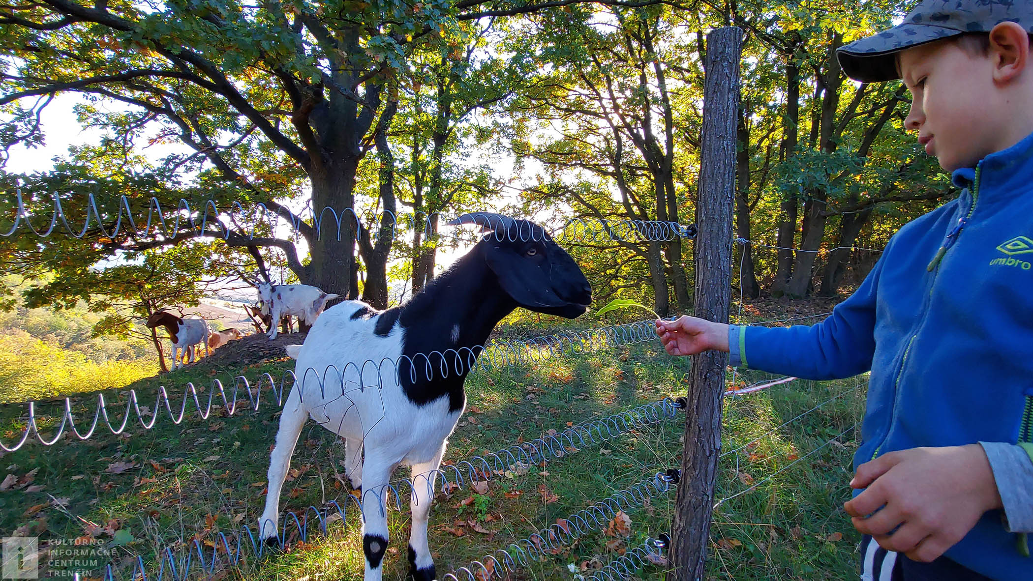 Pozorujeme v ovocnom sade staré vzácne stromy, ktoré sa v bežných záhradách nevyskytujú. Sú tu staré odrody, o ktoré sa ochranári starajú. Prichádzame k plotu, za ktorým sa pasú kozičky. Ponúkneme im výbornú trávičku, aby sa posilnili. V diaľke vidíme veľké stádo ovečiek, okolo nich behá psík a dohliada na ne bača.