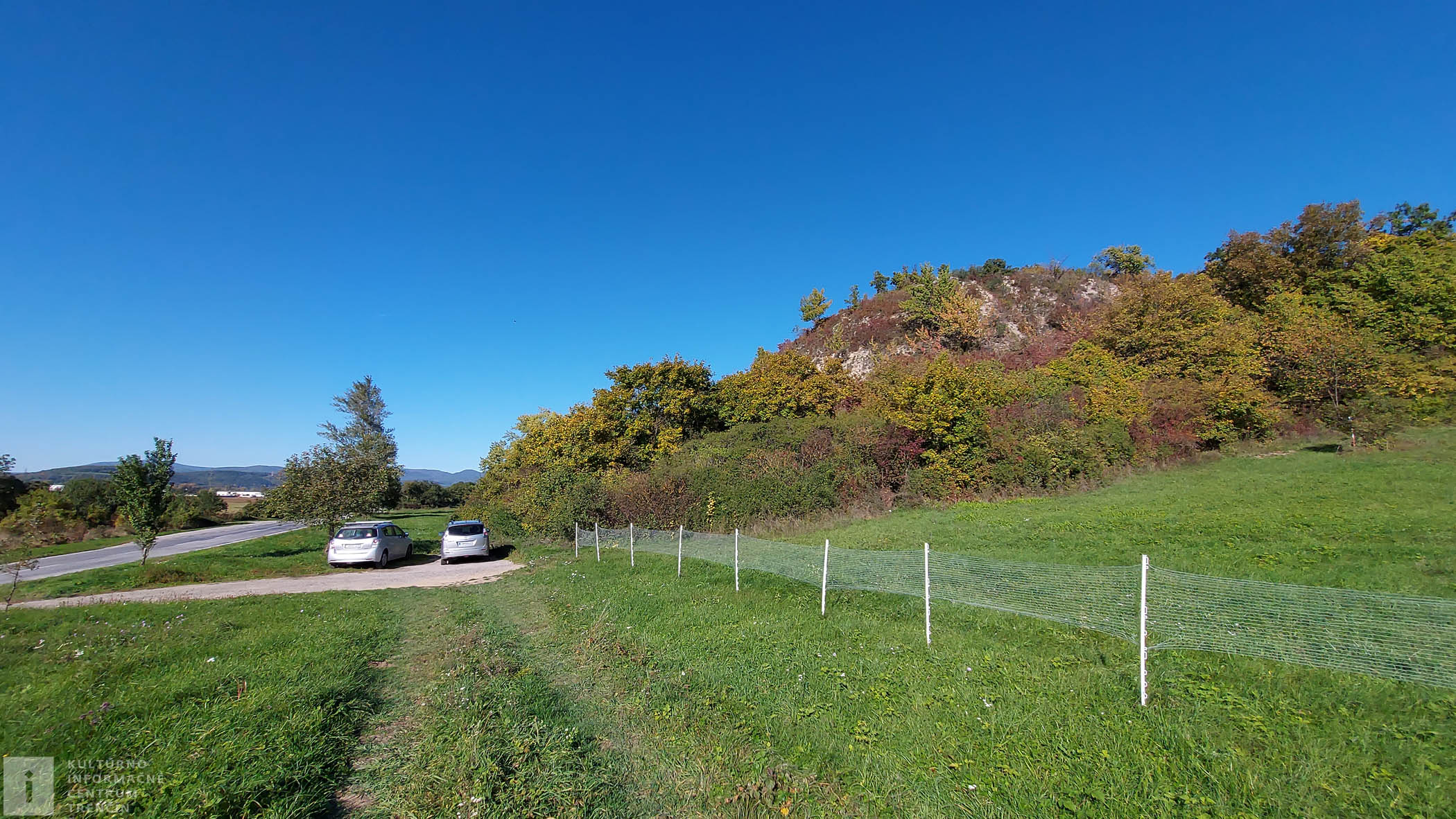 Z kameňolomu postupujeme chodníčkom ďalej do kopca na ozajstnú vyhliadku. Vidno celú západnú „novomeskú“ stranu až do šírej diaľky. Okraj kopca je nebezpečný, preto treba dávať pozor a držať sa v bezpečnej vzdialenosti.