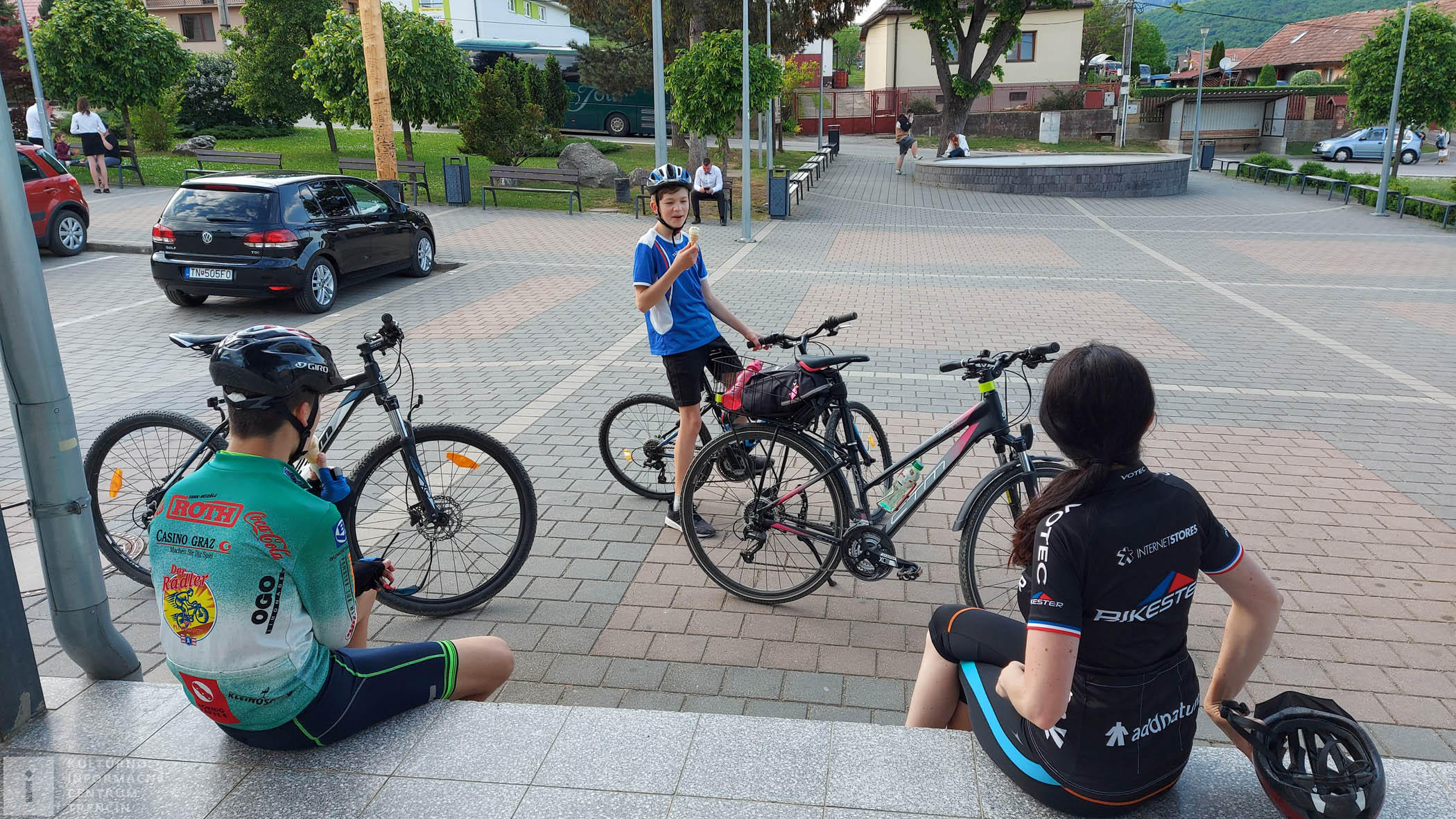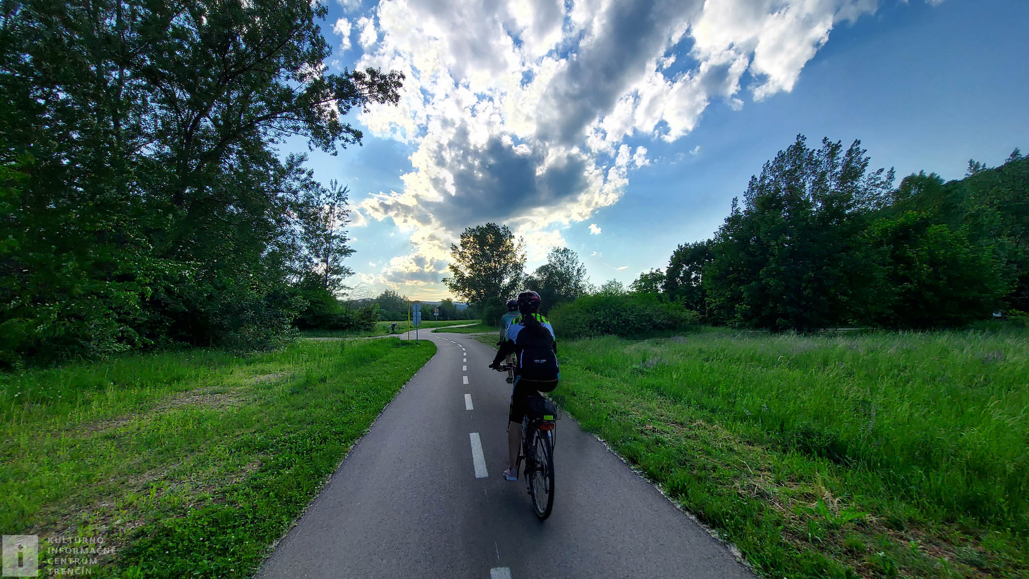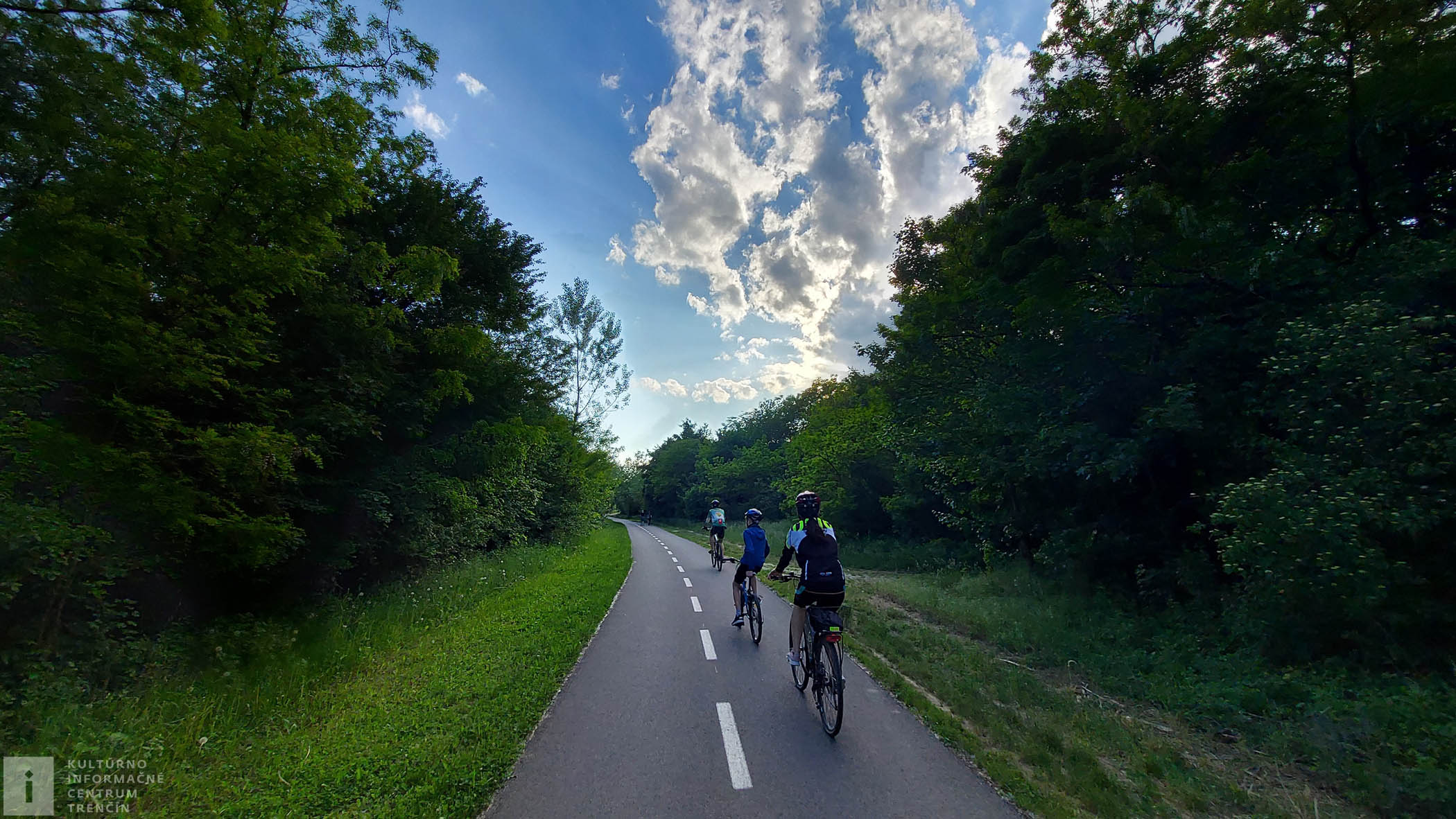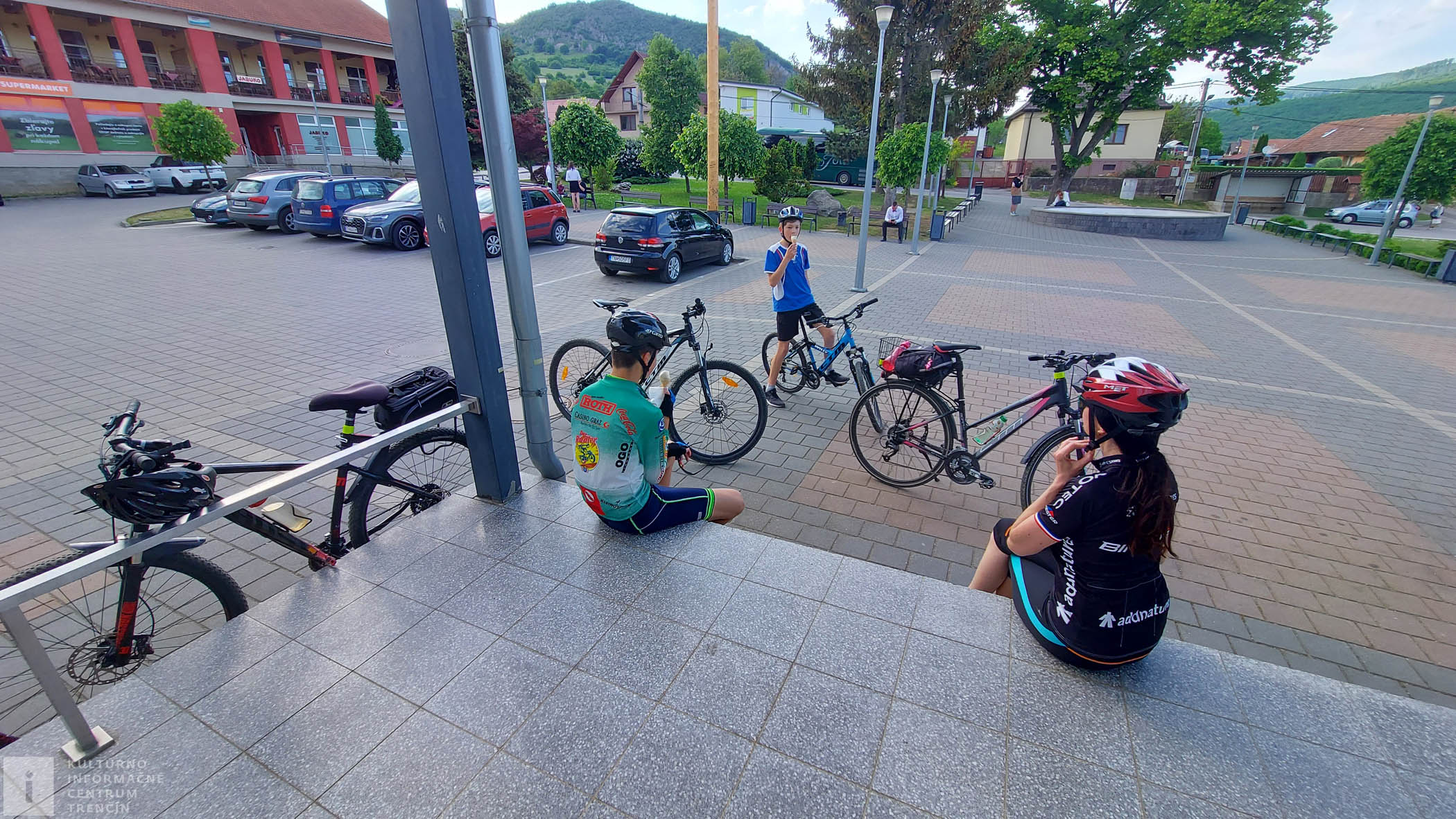 Po malom oddychu sadáme na bajky, vychádzame z lesíka a v diaľke už vidíme, že sa blížime k Dolnej Súči. Pridáme do pedálov, lebo sa tešíme, že si dáme na námestíčku malé občerstvenie.