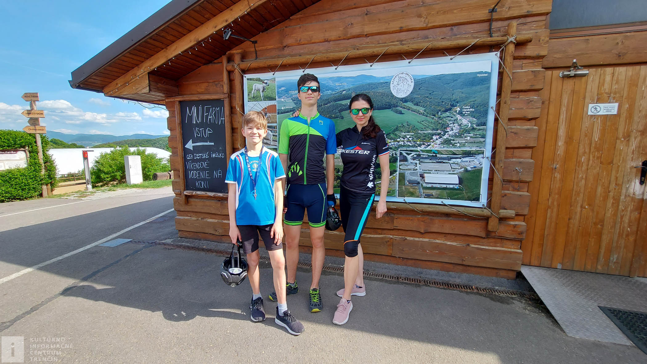 Po zrelaxovaní pokračujeme v cestovaní. Cez areál okolo koníkov a kozičiek prejdeme po poľnej ceste smerom do kopca okolo rozhľadne Malý Jelenec. Bajky do kopca tlačíme, lebo sme sa dobre najedli, tak musíme pomaličky napredovať.