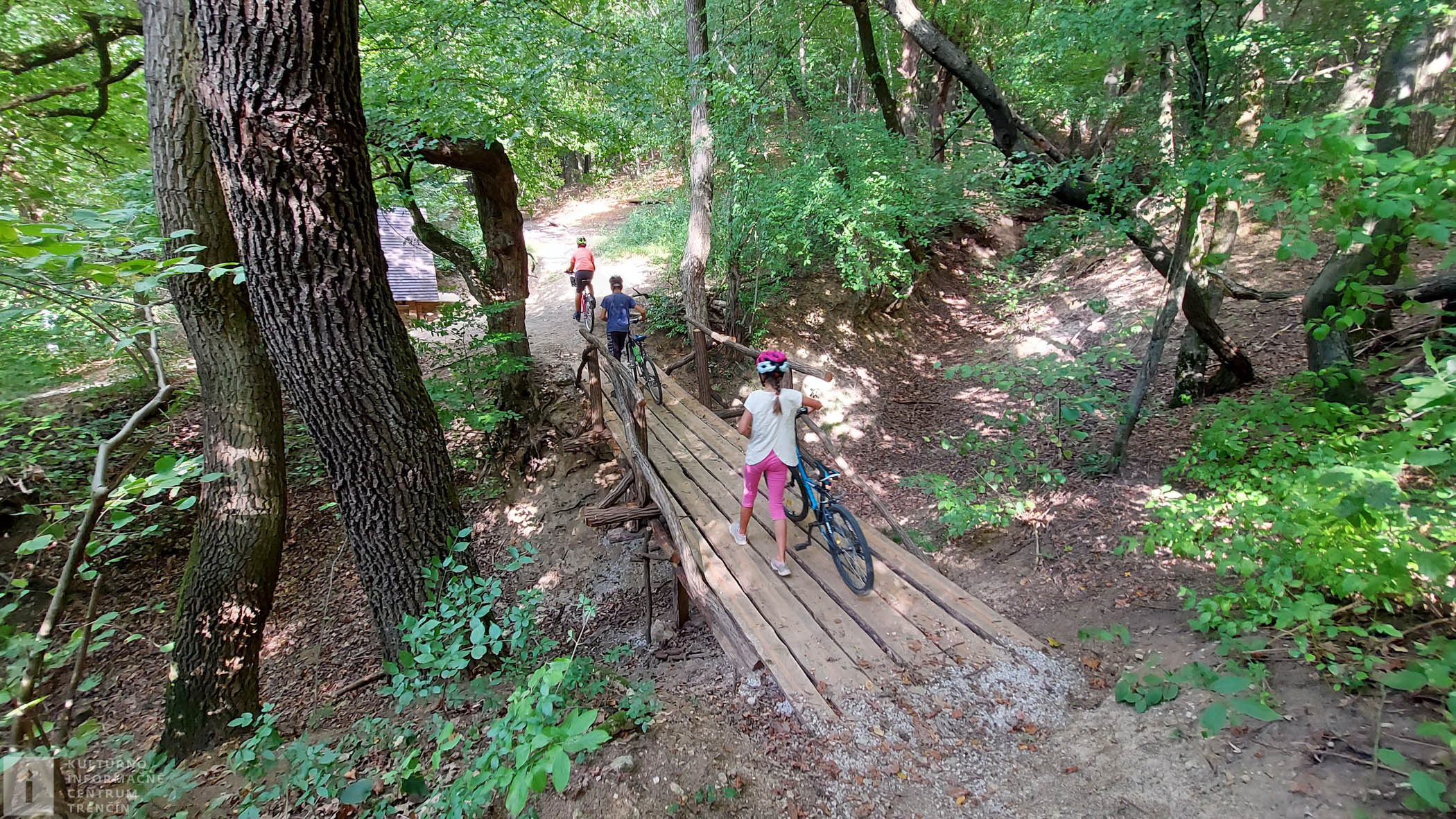 Lesná cestička je dobre ukrytá pred zrakmi miesta neznalých prieskumníkov. My sme však „zdejší“ a dobre to tu všetko poznáme. Ideme po lesnej cestičke až ku samotnej kyselke. Niekde sa lesom vezieme, niekde tlačíme naše bajky. Hlavne treba dbať na bezpečnosť.