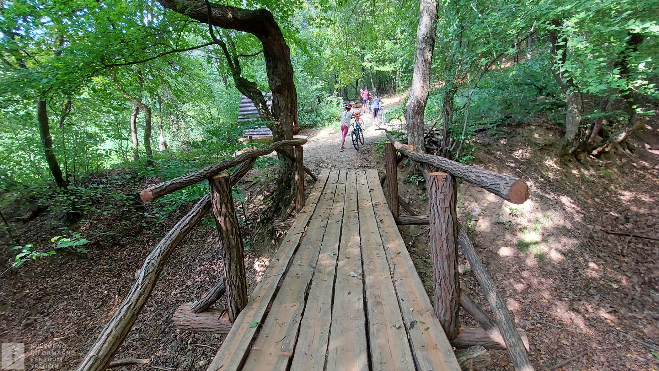 Prichádzame ku parádnemu drevenému mosteku, ktorý dobrí ľudia opravili a prichádzame ku zrekonštruovanému celému reálu Zlatovskej kyselky. Je tu pekný prístrešok kyselky, ohnisko aj posedenie.