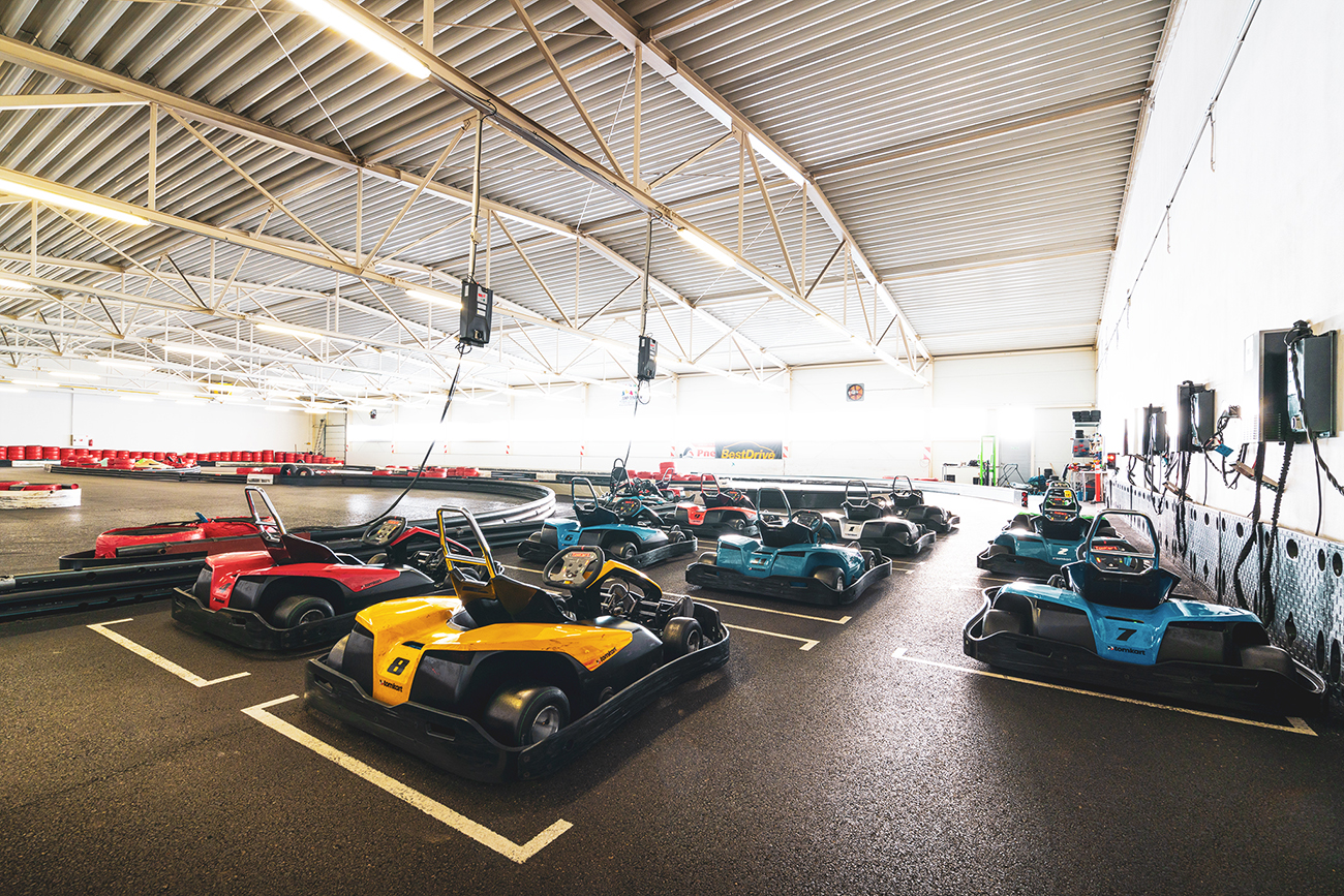 Inside the indoor hall, you’ll find 11 Swiss electric go-karts with multifunction steering wheels that let you track your lap times. Both adults and children taller than 125 cm can drive the go-karts. The track is 230 meters long with an asphalt surface. The layout isn’t difficult, so even beginners can handle it with easy.