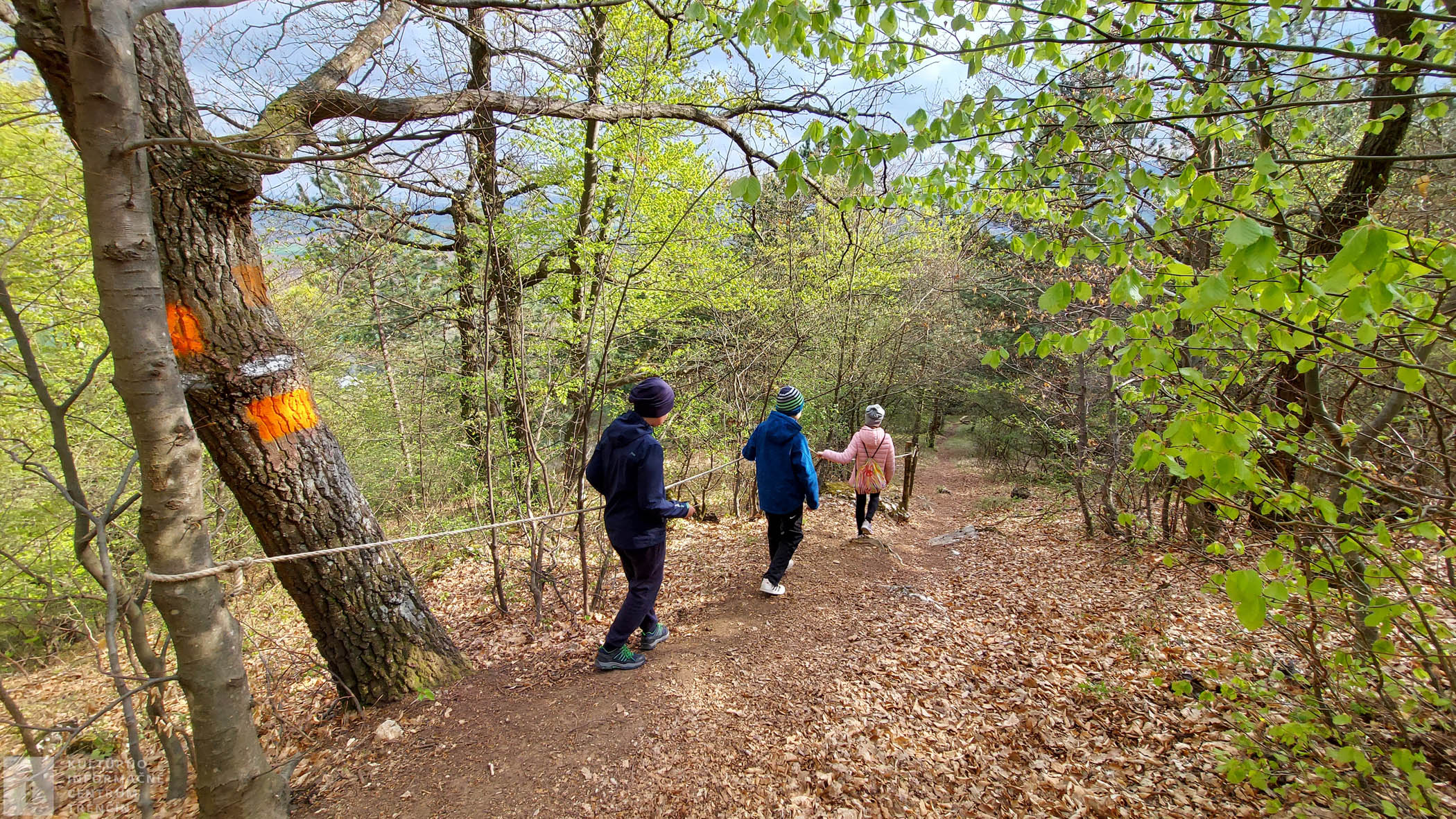 Späť sa vraciame po inej ceste. Mierne odbočíme z vychodeného chodníka, po ktorom sme išli hore na vyhliadku. Miestni ľudia si cestičky lesom vyznačili vlastným značením. Na mnohých miestach sú inštalované rôzne pomôcky na prekonanie ťažších úsekov. Spievame si do kroku a rozprávame si zážitky z našich potulkách prírodou. Cesta nám rýchlo plynie a ani sa nenazdáme a vychádzame z lesa.