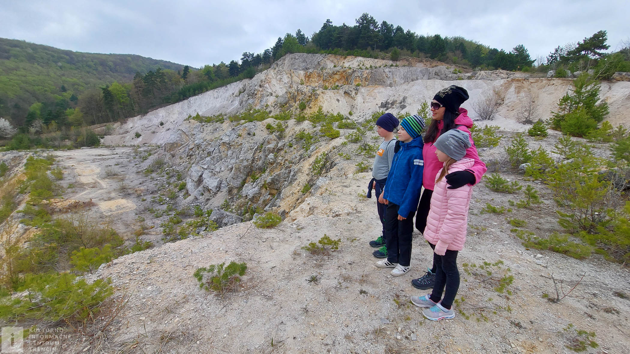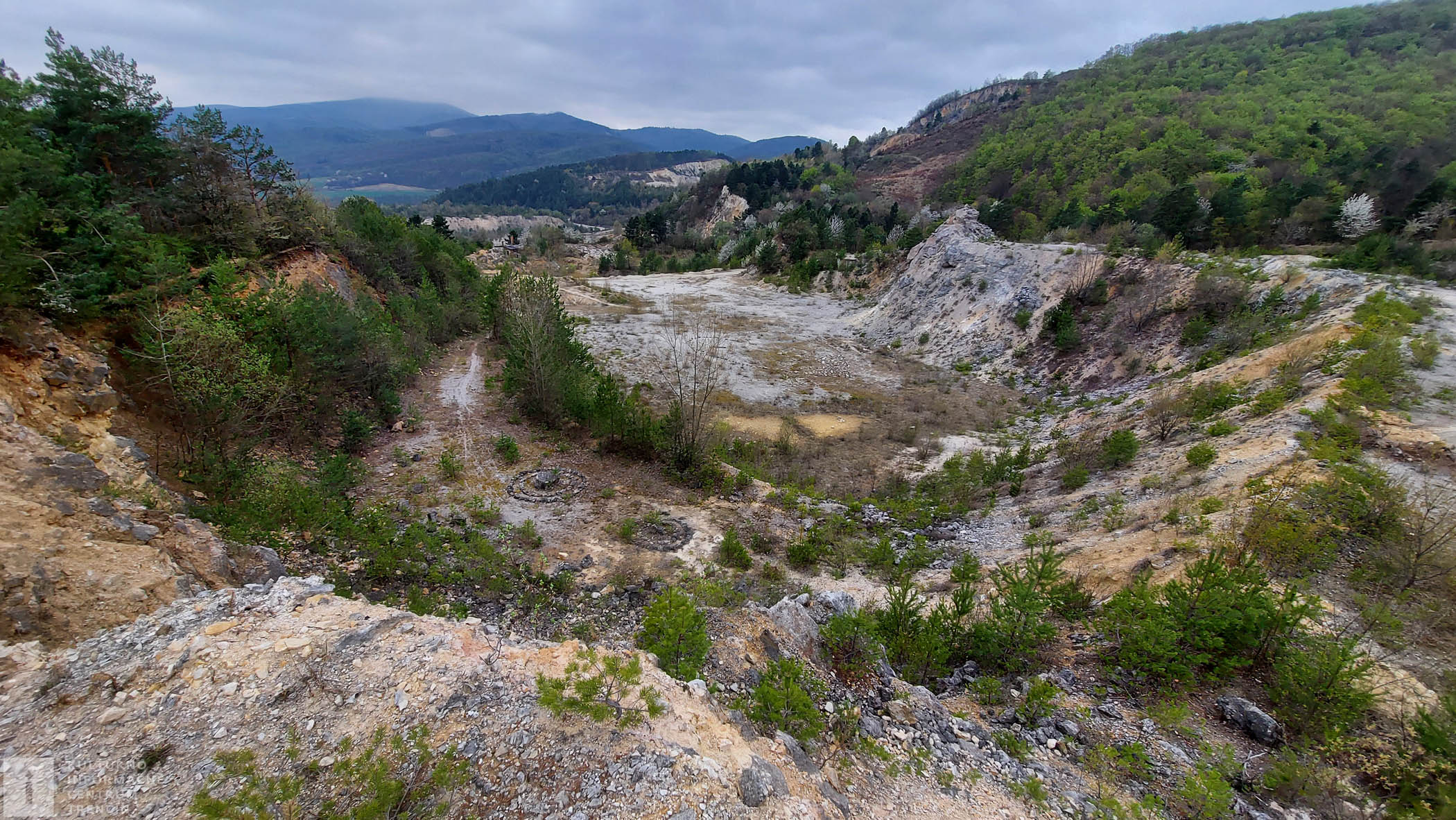 Miestny kameňolom, cez okraj ktorého prechádzame, je od roku 2006 uzatvorený. Ťažil sa tu od začiatku 19. storočia dolomit a vápenec. Dobývacie priestory začínajú pomaly zarastať vegetáciou, príroda si ho berie pomaly späť. Jeho majitelia však majú záujem znovu spustiť ťažbu. Je tu veľa zaujímavého na videnie. Amatérski hľadači pokladov (=zaujímavých kamienkov) si tu prídu na svoje – a to teda my určite sme 🙂
