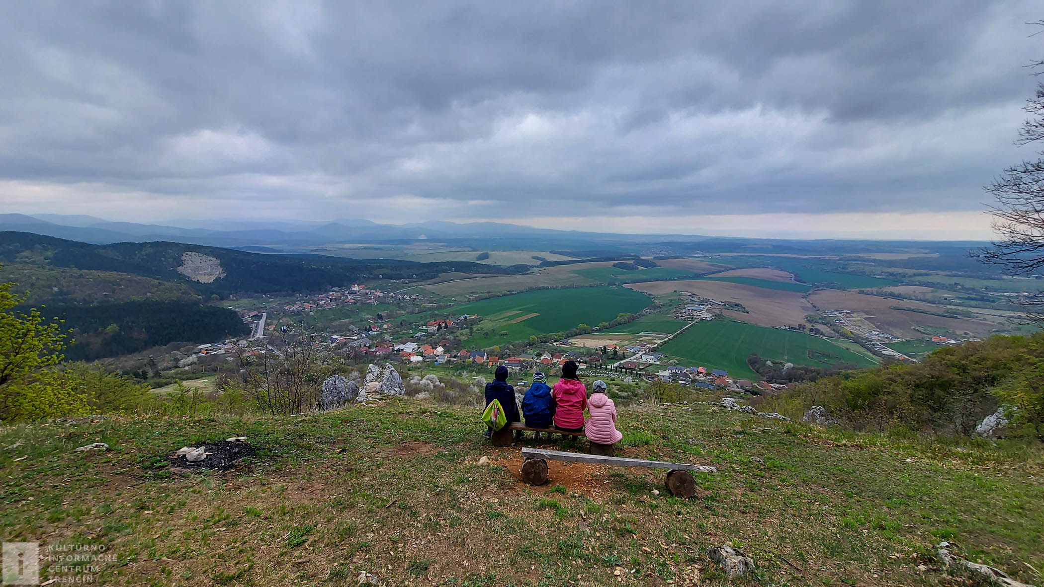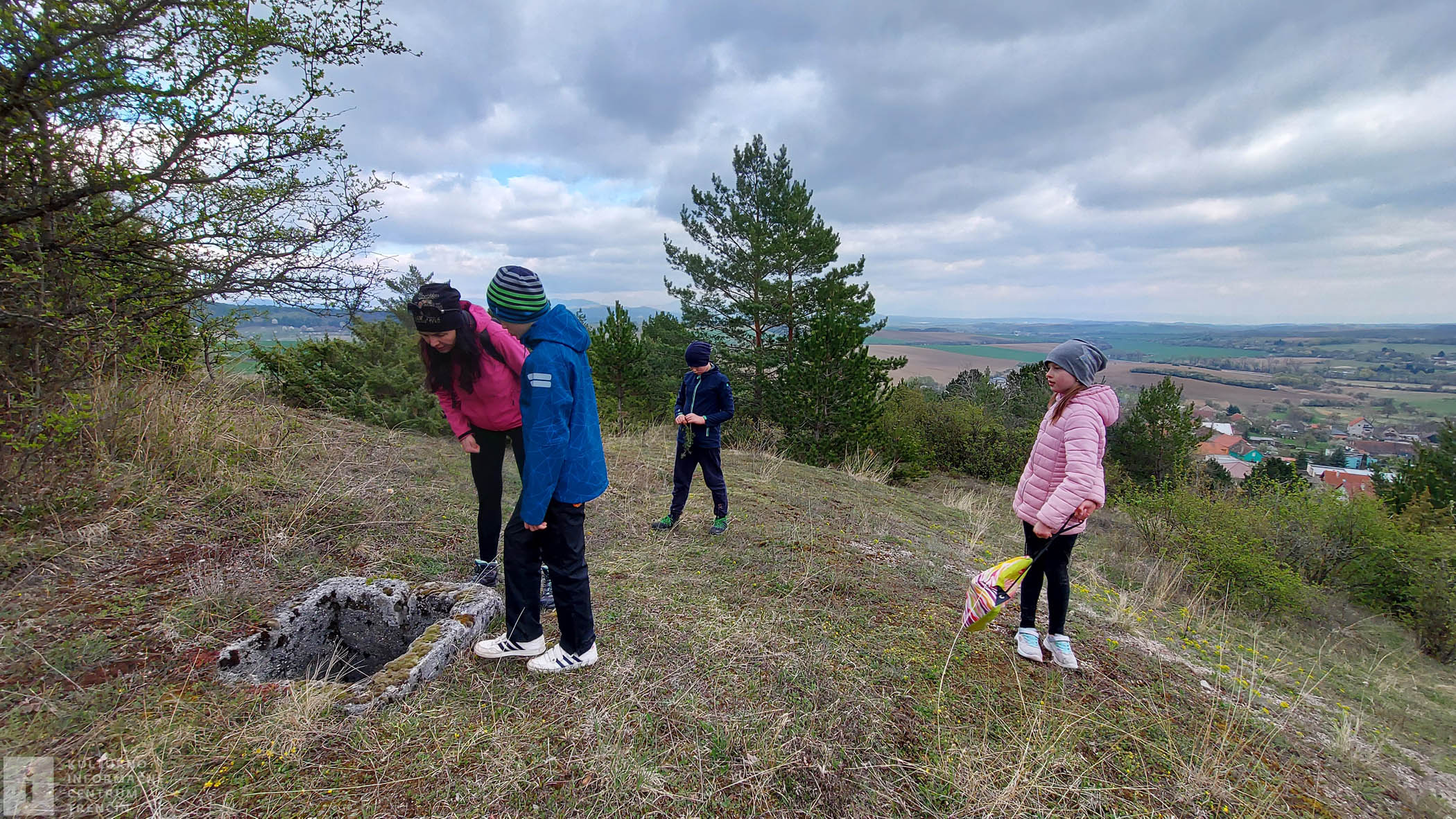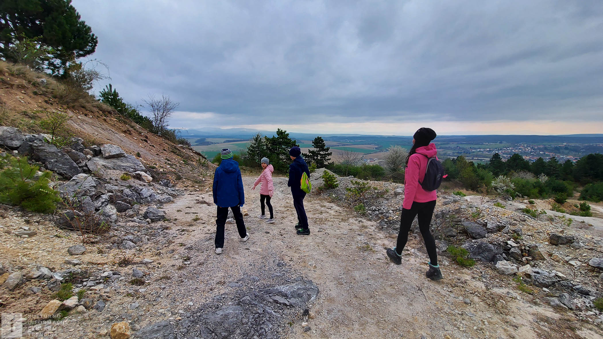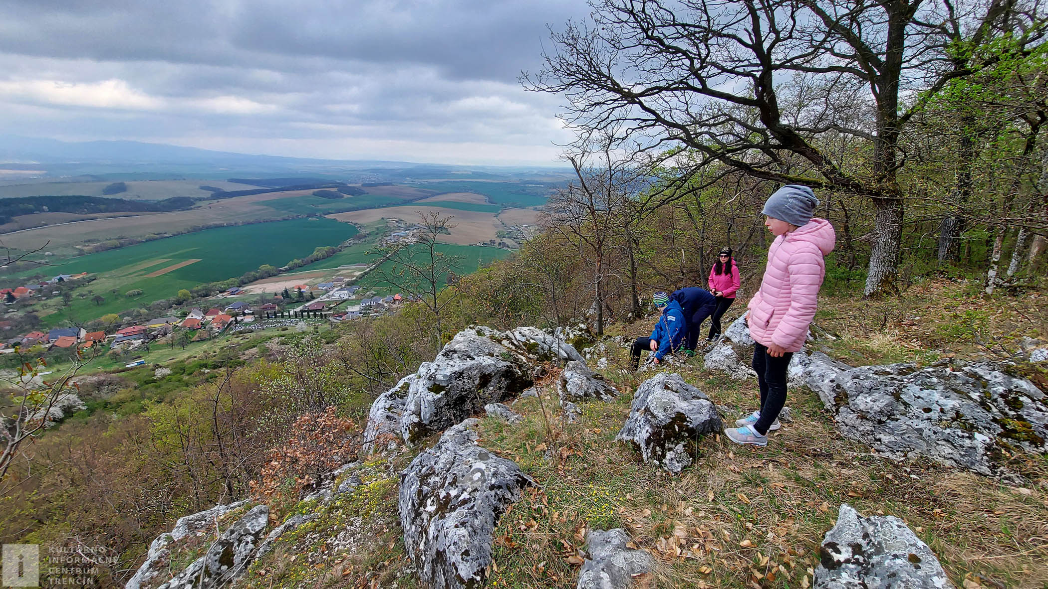 Ďalej už po žltej turistickej značke pokračujeme prudšie do kopca. Naberáme výšku, čo teší všetkých výhľadov chtivých členov nášho tímu. Nakoľko sa za nami otvára celá bánovská kotlina. Na tomto výlete je pre rodičov dôležité dávať väčší pozor na menšie nezbednejšie deti – pôjdeme cez nebezpečnejšie miesta, ktoré však budú o to krajšie a zaujímavejšie.