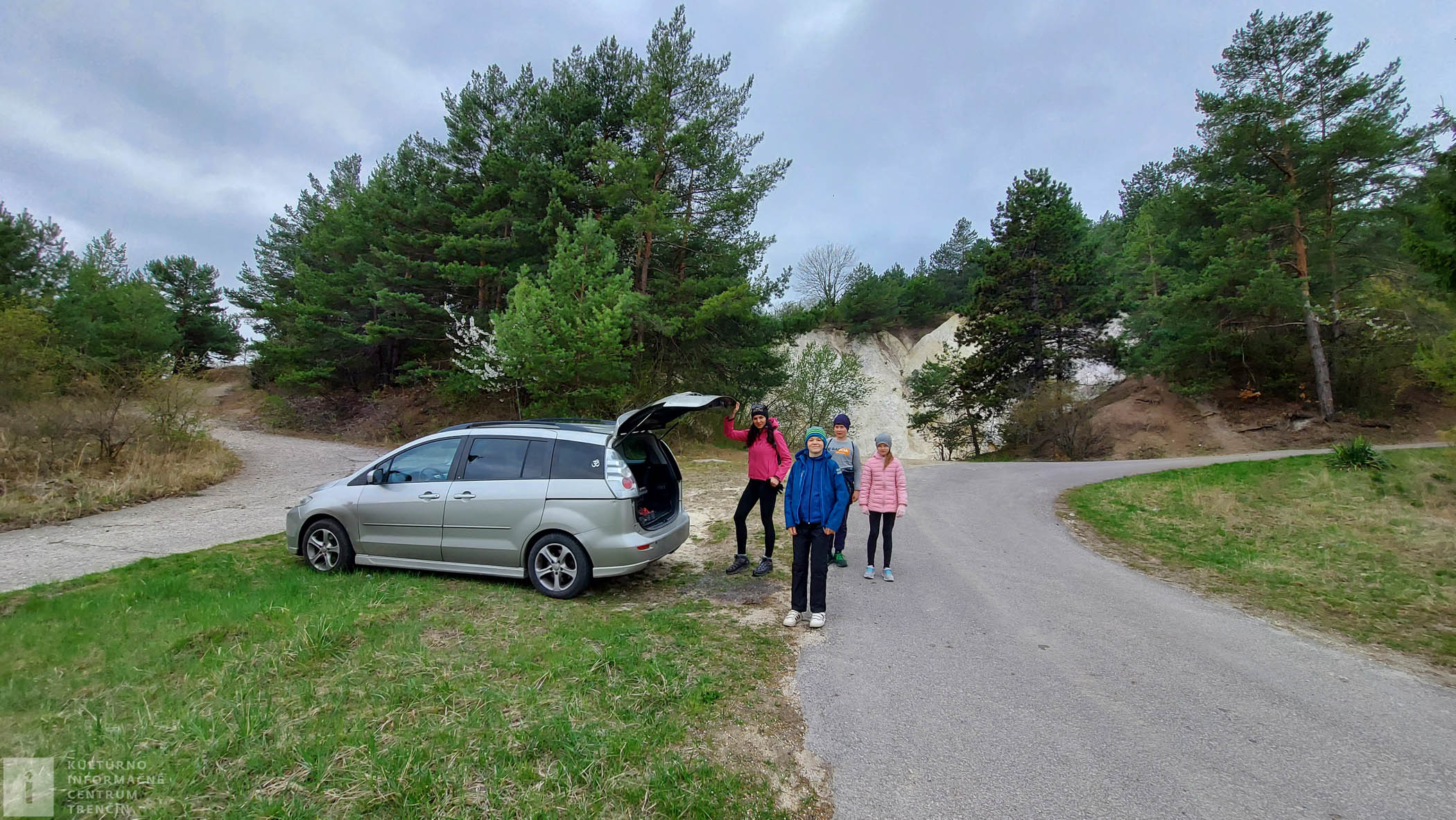 Prichádzame do Trenčianskych Mitíc. Auto zaparkujeme pri ceste na vhodnom a bezpečnom mieste, z ktorého môžeme pohodlne vyraziť na dnešný výlet. Máme v pláne sa na začiatku držať žltej turistickej značky, ku ktorej sa však dostaneme až po chvíli od začiatku výletu. Hneď po vystúpení z auta nás ako magnet pritiahne k sebe prvý kameňolom. Musíme ho dôkladne preskúmať a riadne sa zašpiniť od šedého prachu 🙂
