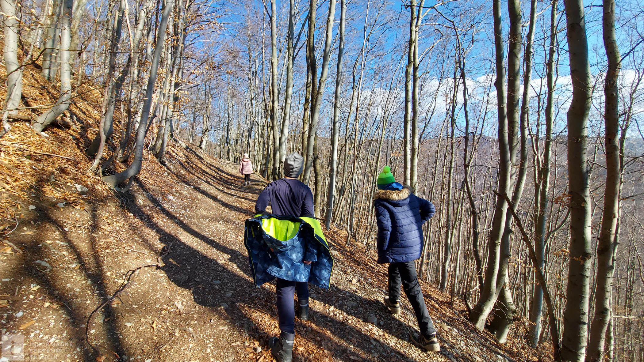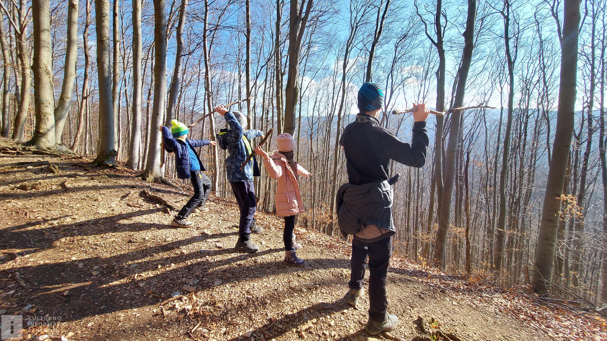 Naša „rovinka“ sa ešte viac nakláňa? Pre niekoho môže byť nezáživné šliapať do kopca na tomto úseku, pretože cesta vedie rovno hore lesom a môže byť nudná a únavná. Pre nás to neplatí ani náhodou. Je to vždy len o tom, ako sa sami vieme zabaviť. Deckám rozprávame príbehy o hradisku, ktoré sa nachádzalo presne nad chodníkom, po ktorom kráčame – na vrchu kopca. Bolo to miesto, kde kedysi žili ľudia, aby sa tu bránili pred nepriateľmi. S deckami hneď aj nacvičujeme, ako by sa dalo brániť pred takýmito nepriateľmi – a už okolo nás lietajú palice a kamene ? Zistili sme, že by sme sa v pohode ubránili.