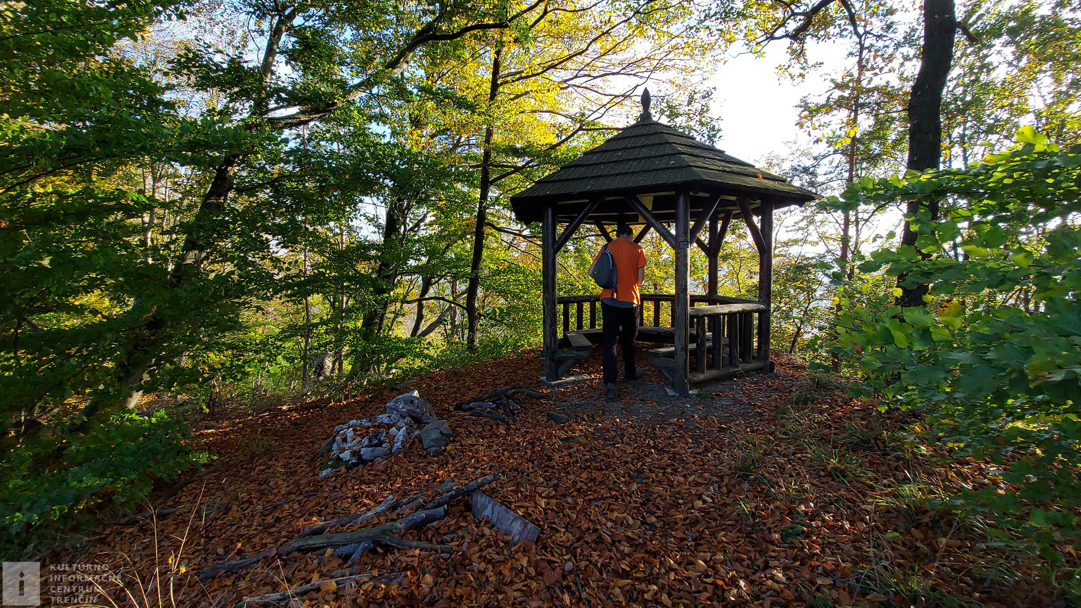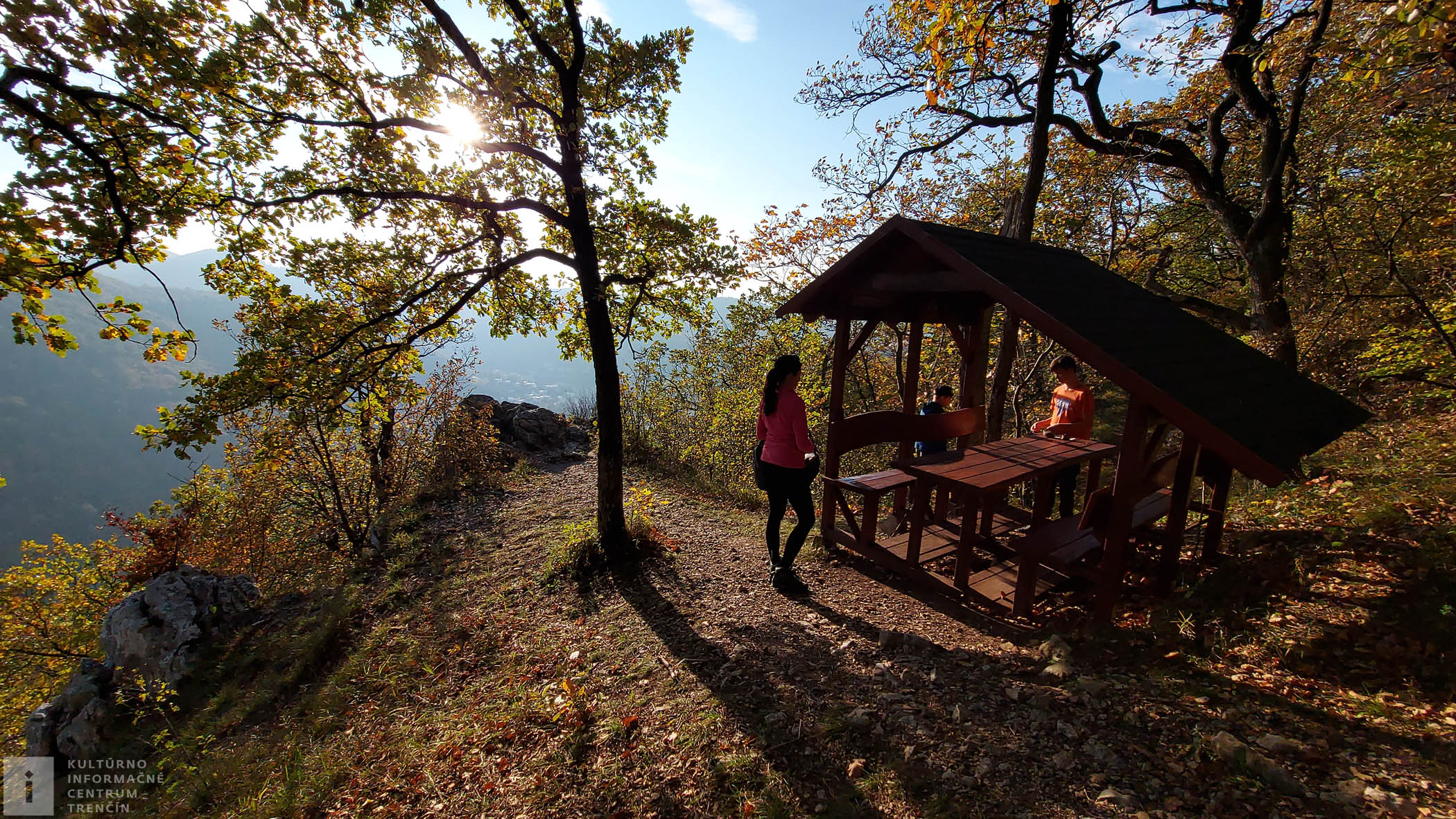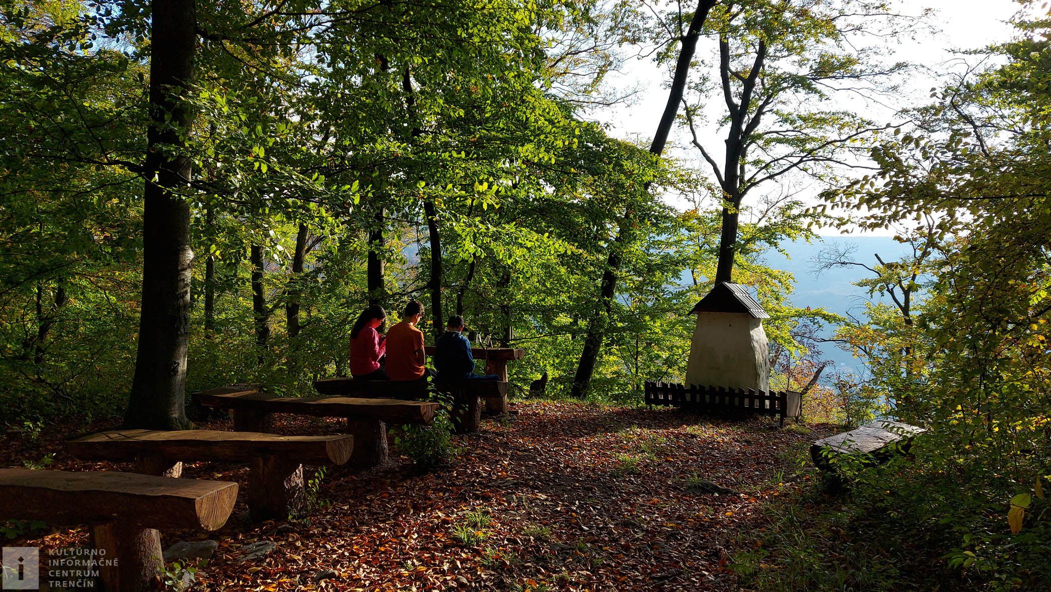 Pokračujeme ďalej a prichádzame po chvíli na ďalšie oddychové miesto. Je tu malá kaplnka a kvalitné posedenie pre pocestných. Oddýchneme si máličko a ideme ďalej.