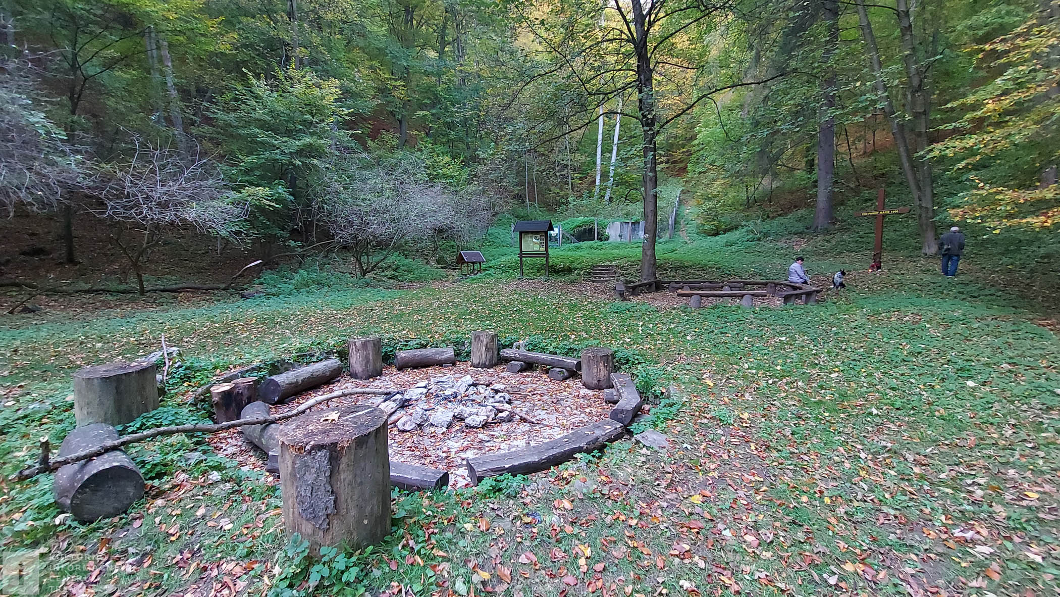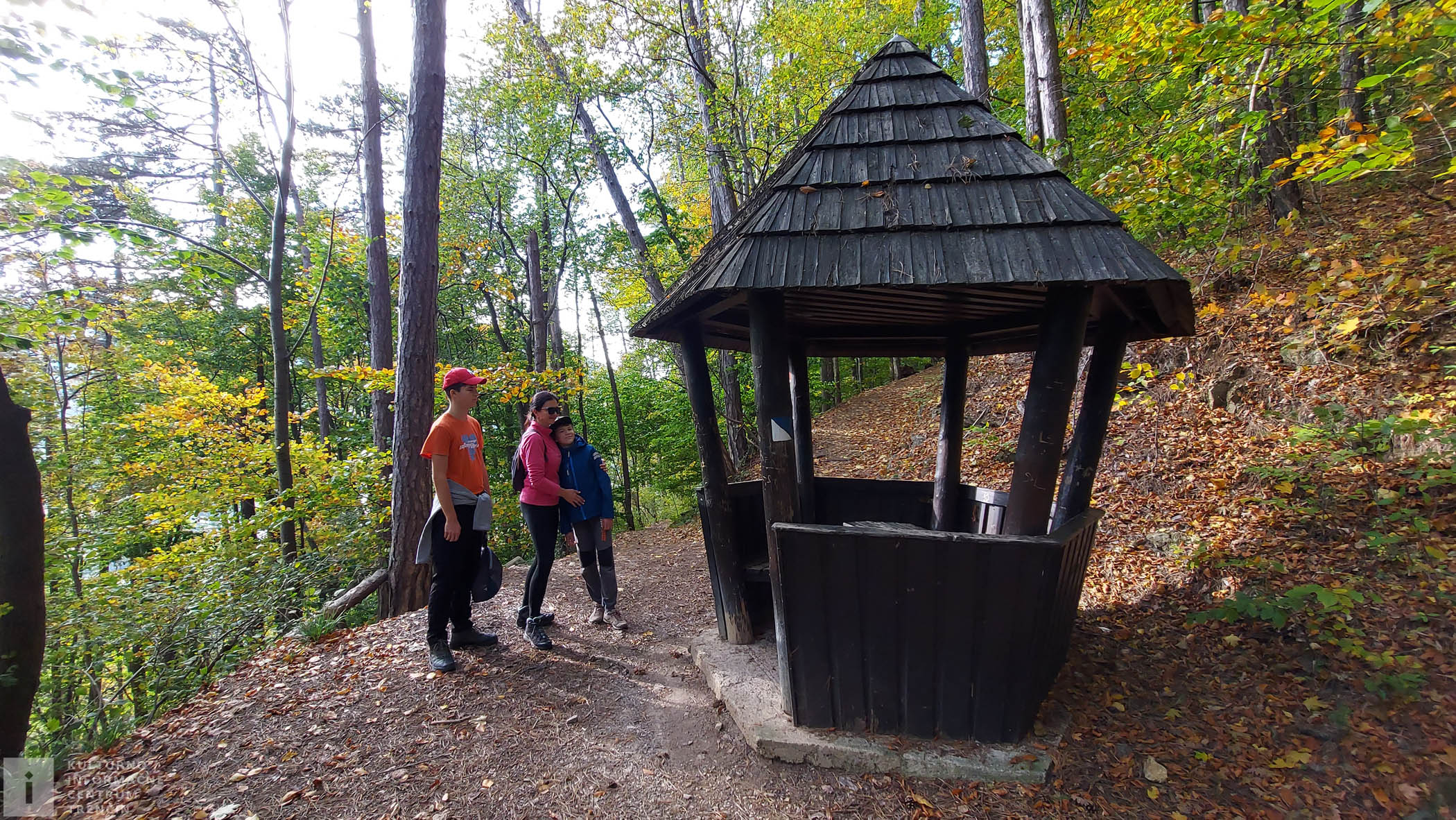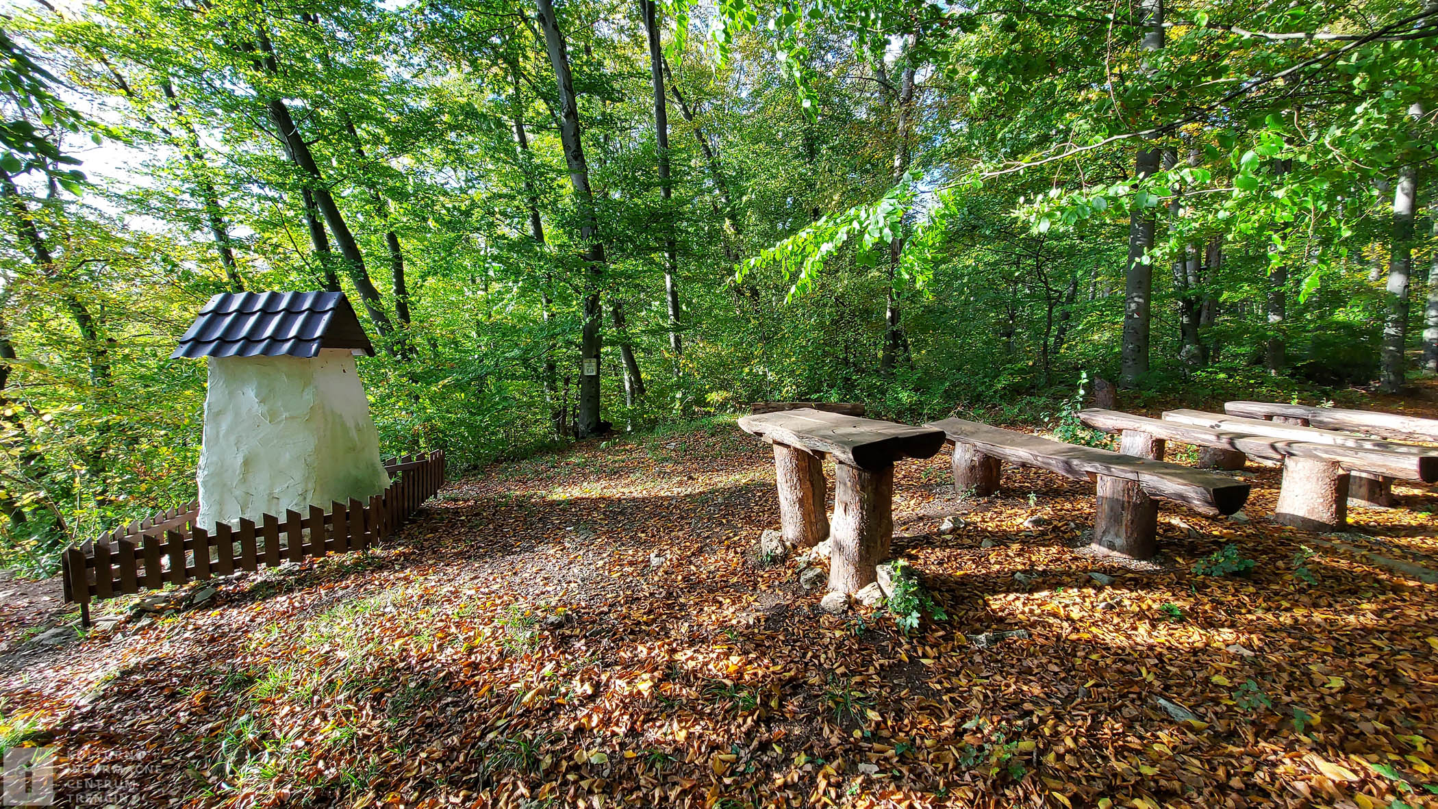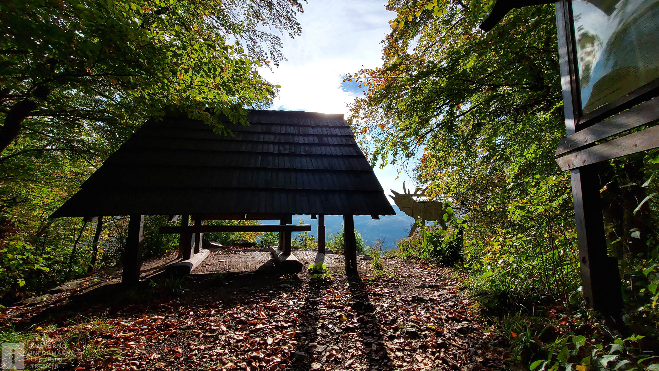 Pokračujeme ďalej a prichádzame po chvíli na ďalšie oddychové miesto. Je tu malá kaplnka a kvalitné posedenie pre pocestných. Oddýchneme si máličko a ideme ďalej.