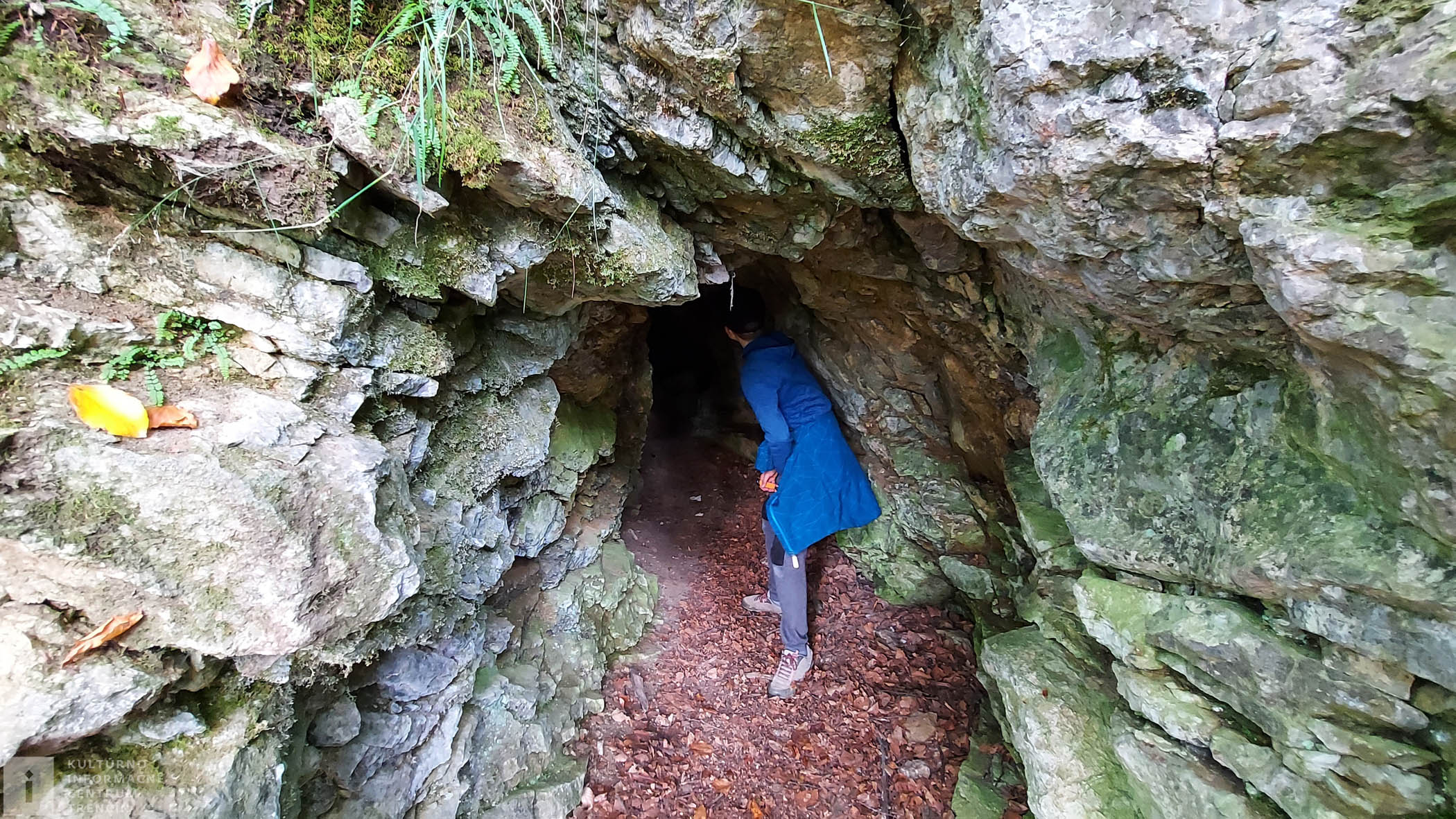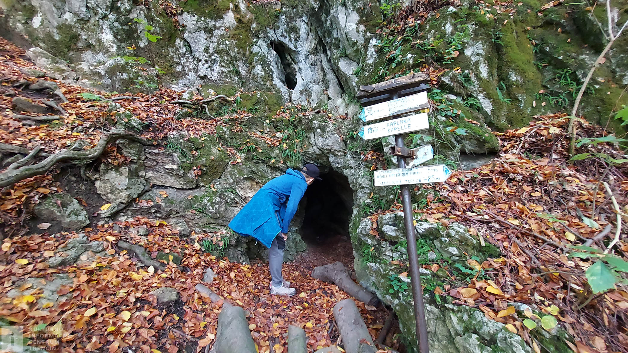 Po chvíli prichádzame ku miestnej zaujímavosti. Je ňou Jaskyňa pod Jeleňom. Samozrejme hneď zapíname na mobiloch svietenie a ide sa dnu na prieskum. Jaskyňa je voľne prístupná, má dĺžku slušných 27 metrov. Je však po pár metroch už značne úzka a nám sa nechce zašpiniť od blata, preto cúvame a ideme radšej von.