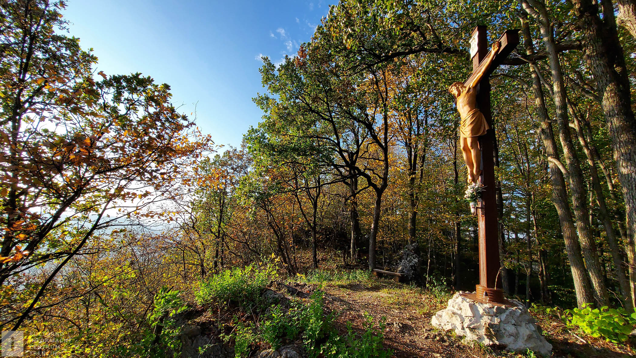 Kúsok od vyhliadky sa nachádza opäť pietne miesto s krížom a posedením. Pokračujeme ďalej a prichádzame na okraj našej náhornej plošiny, takže musí nasledovať zostup dole. Ten je ale riadne strmý, musíme dávať zvýšený pozor. Hlavne deti by si radi cestu skrátili. Žiadne také, ideme pekne po chodníku.