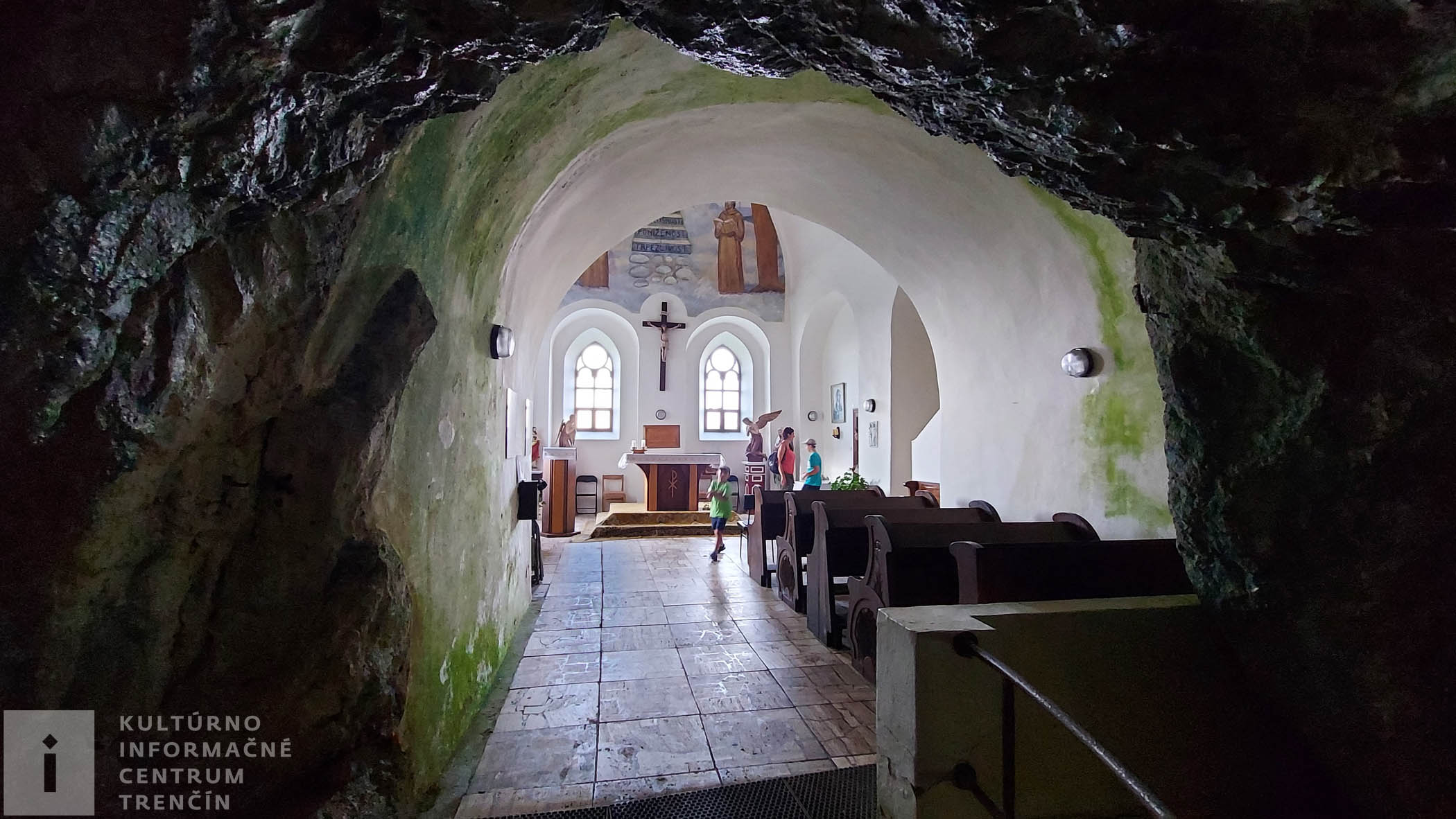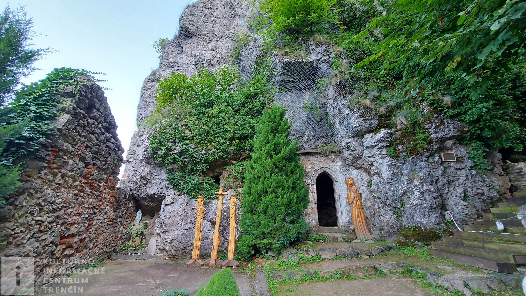 Pri veľkej skale je vybudovaný chodník s drevenými schodmi, po ktorom vyjdeme až na parkovisko pri pútnickom dome. Odbočka na tento chodníček je slabo značená, treba ho nájsť a ísť po ňom. Domov sa nám zatiaľ nechce, preto ešte preskúmame okolie kostola a pútnického domu. Skala, na ktorej je kostol postavený, láka výhľadom do šíreho okolia. Dôkladne všetko sledujeme ako ten orol z povesti o Beňadikovi. Poznáte ju?