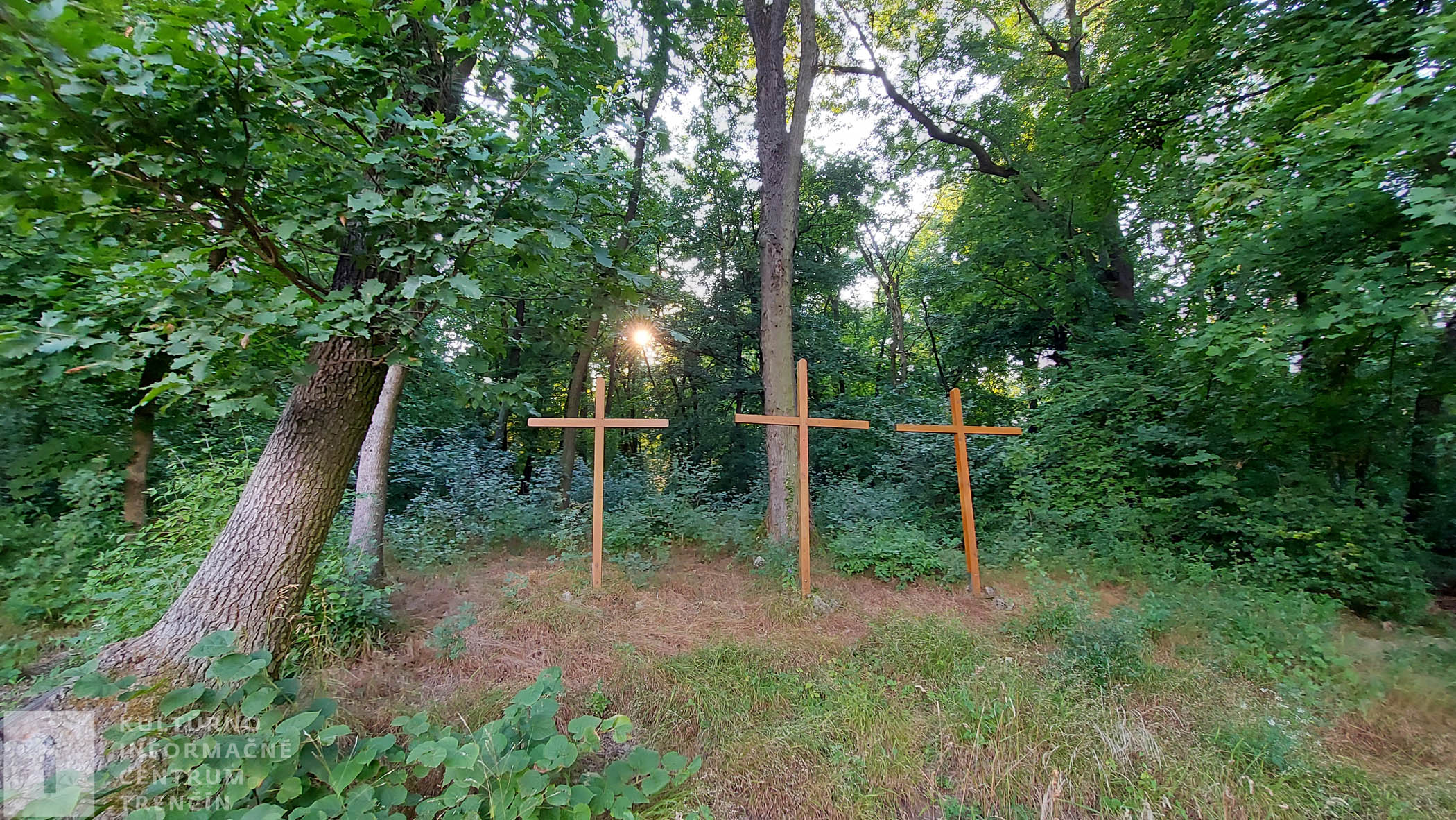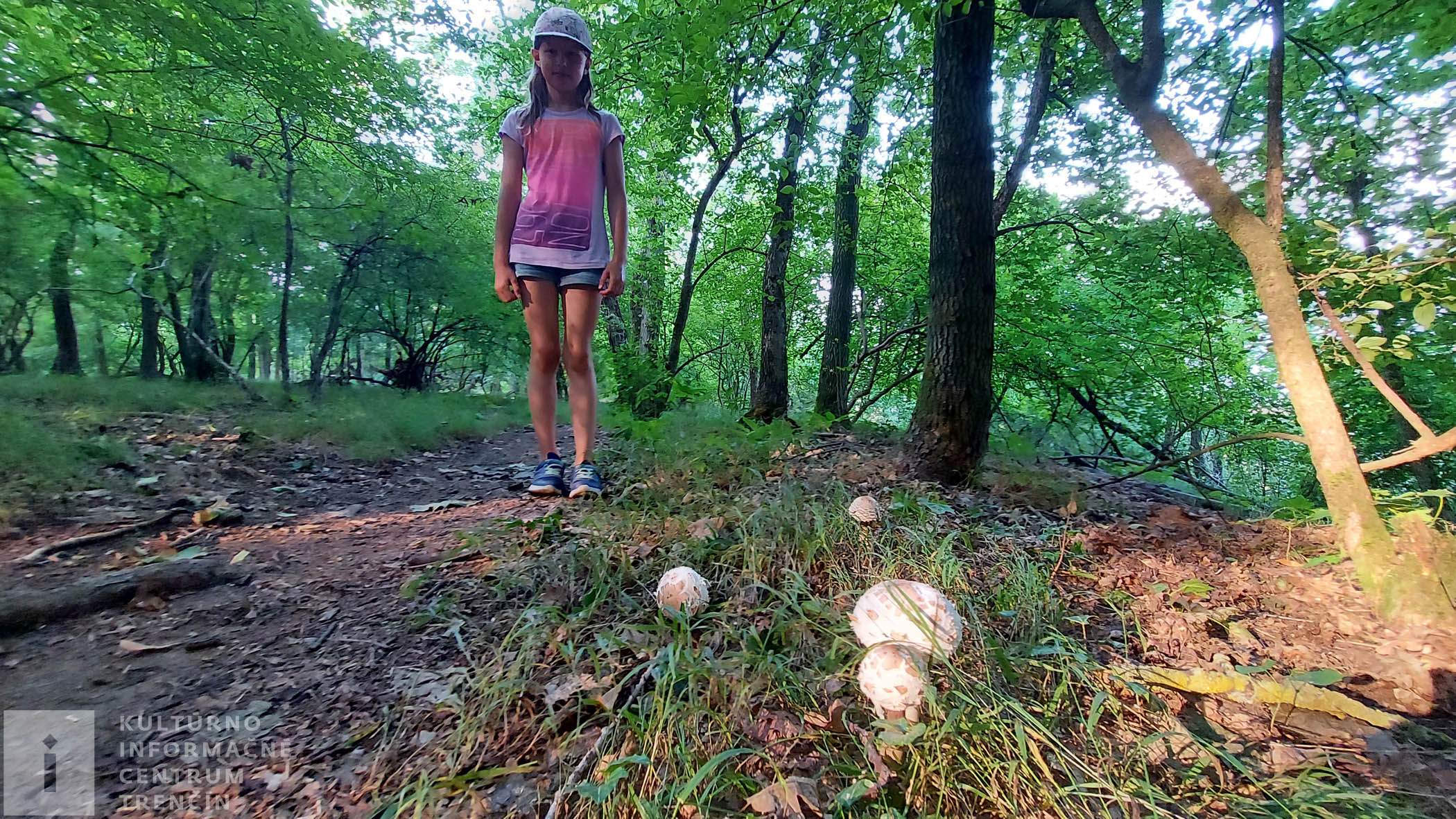 Po rovinke prichádzame ku trom krížom, pri ktorých sa nachádza vyhliadkový bod. Všade navôkol rastie množstvo hríbov, hráme sa na poznávaciu hru. Sme na najvyššom bode dnešného výletu, teoreticky by sme mali už len klesať dolu kopcom. Hmm, teória. 🙂