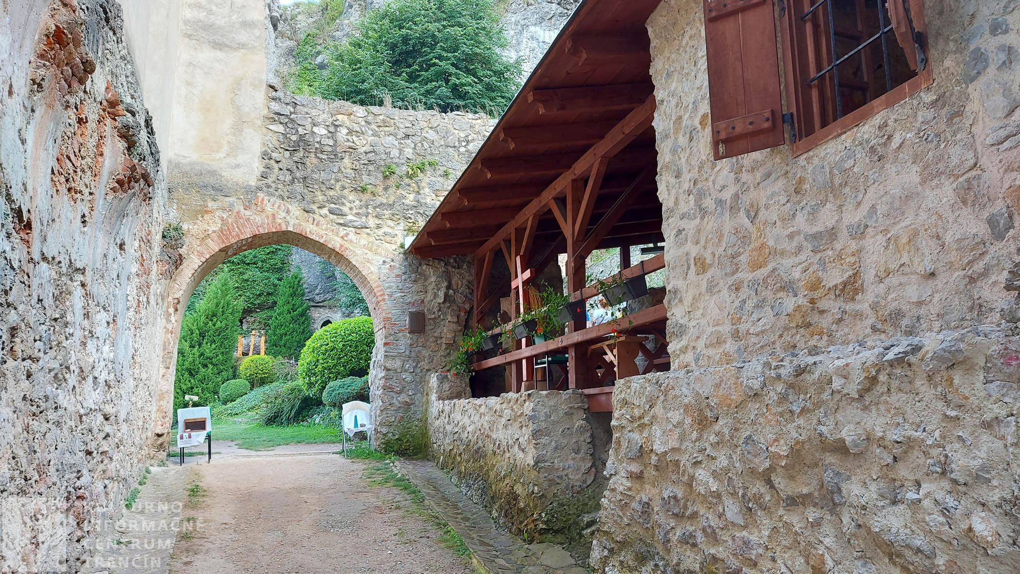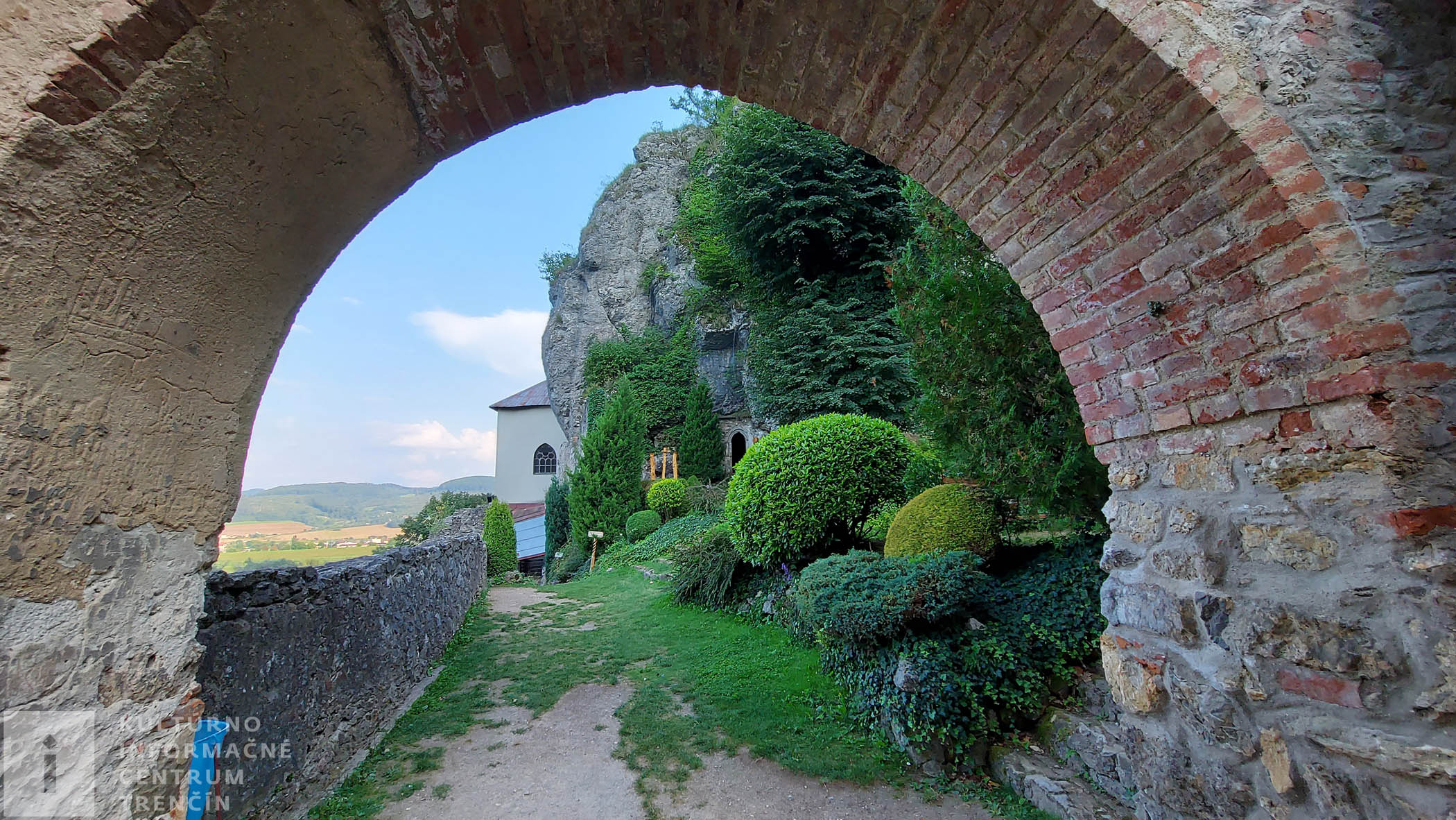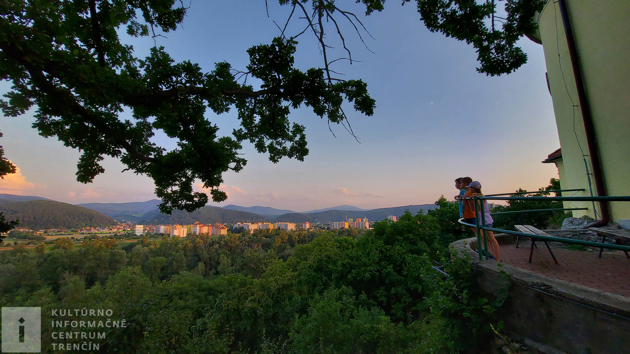 Prichádzame k informačnej tabuli, kde sa cesty rozdvojujú. Doľava pokračuje náučný chodník. My však odbočujeme doprava a ideme si obzrieť vyhliadku, z ktorej je krásne vidno našu rodnú rieku Váh, blízke obce a mestá. Je potrebné, aby na tejto odbočke ku vyhliadke, dali rodičia pozor na deti (aj na seba), pretože terén je prudký a vyhliadka je na okraji priepasti.
