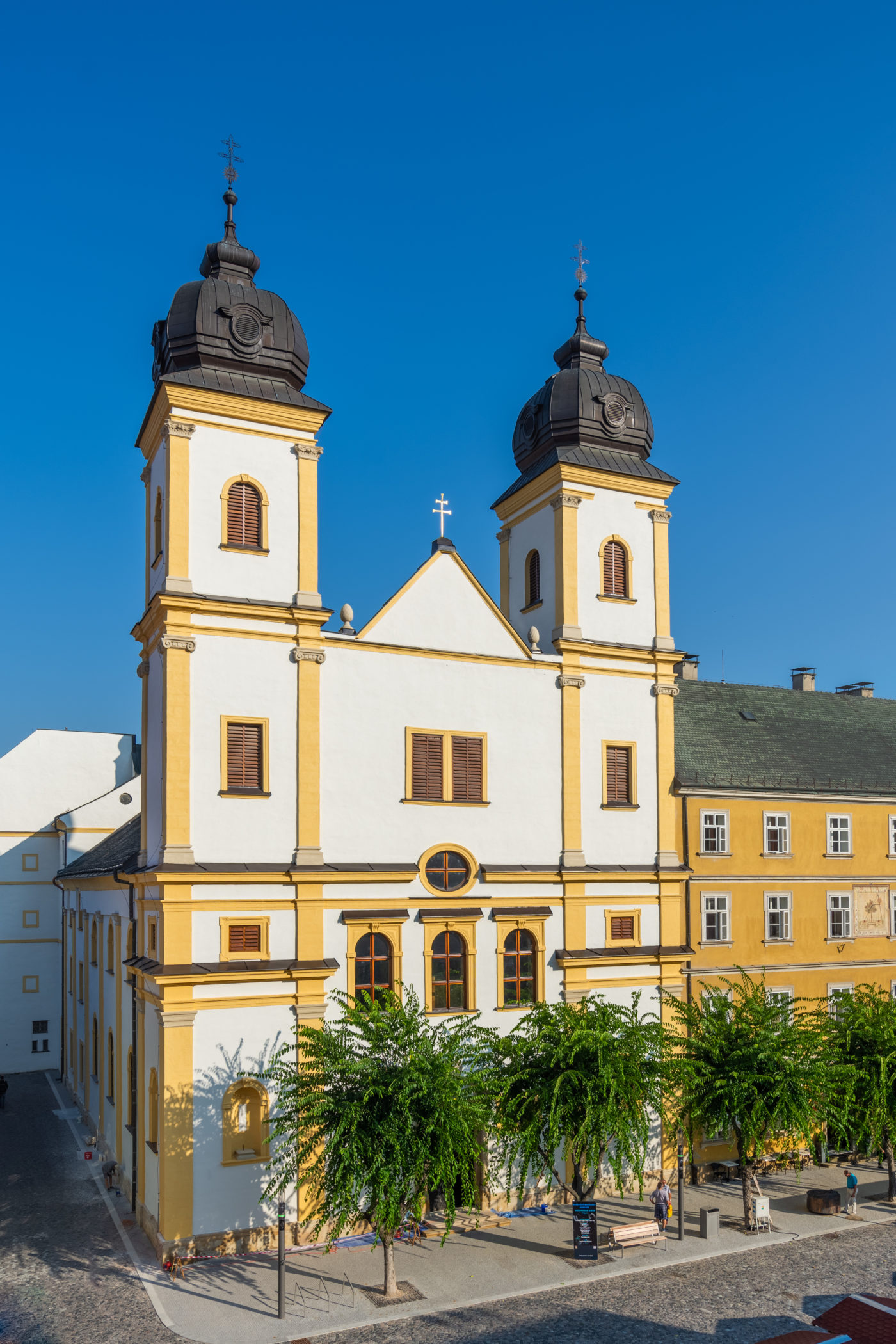 Rímskokatolícky kostol sv. Františka Xaverského (pôvodne jezuitský, od roku 1776 piaristický) je dominantou západnej časti Mierového námestia a právom patrí medzi najkrajšie sakrálne barokové pamiatky na Slovensku. Zaujímavá je najmä iluzívna maľba kupole nad chrámovou loďou – v skutočnosti sa totiž kupola nad chrámom nenechádza, ale je namaľovaná tak, že vytvára dojem, ako keby tam kupola naozaj bola.