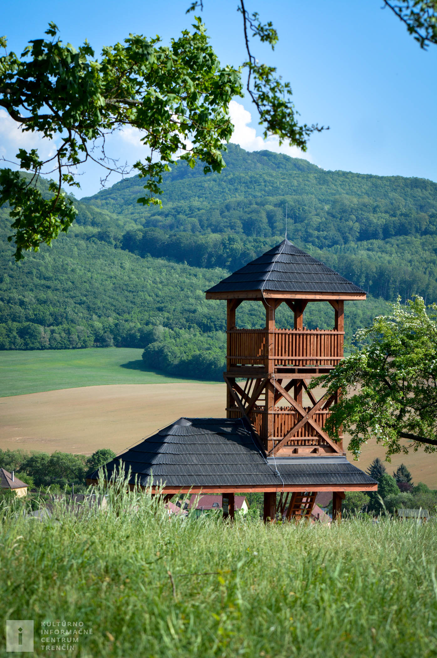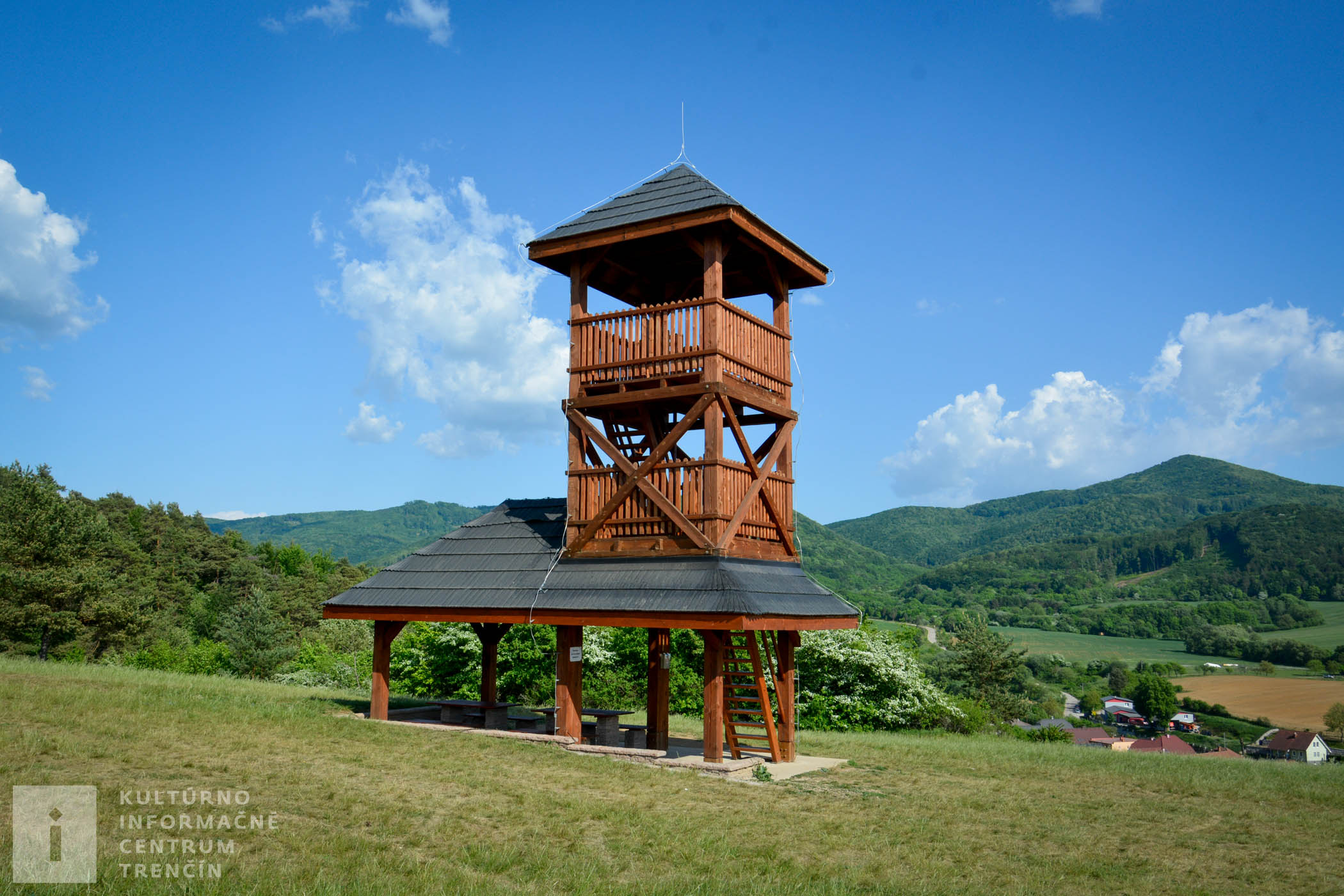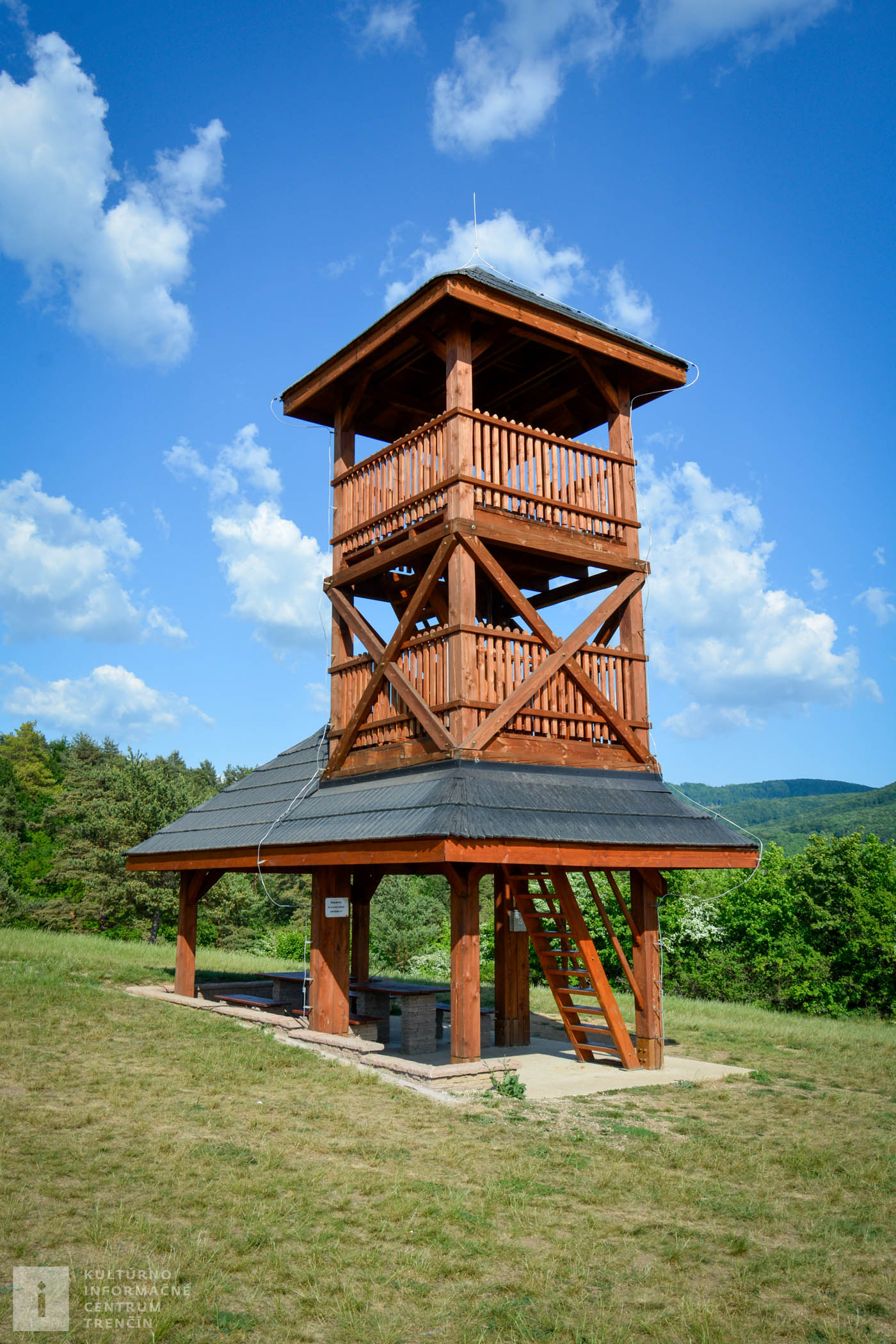 Drevená stavba z diaľky pripomína kostolík s vežičkou, no až keď sa k nej priblížite, zistíte, že ide o dvojpodlažnú 9,5 metrovú vyhliadku, z ktorej sa vám naskytnú ukážkové zábery. Ako na dlani budete mať Považský Inovec, Biele Karpaty, Strážovské vrchy, ako aj okolité obce Trenčiansku Turnú, Mníchovu Lehotu, Trenčín či Nové Mesto nad Váhom.
