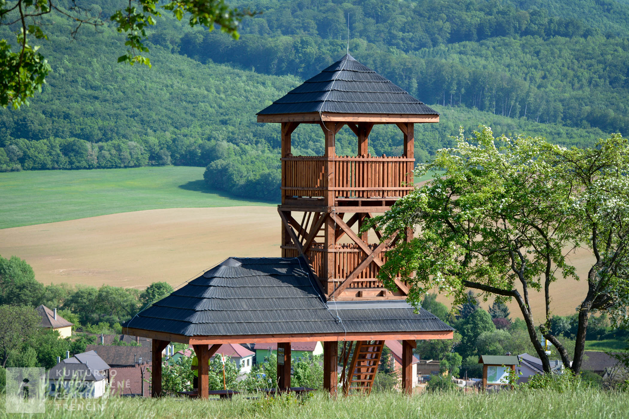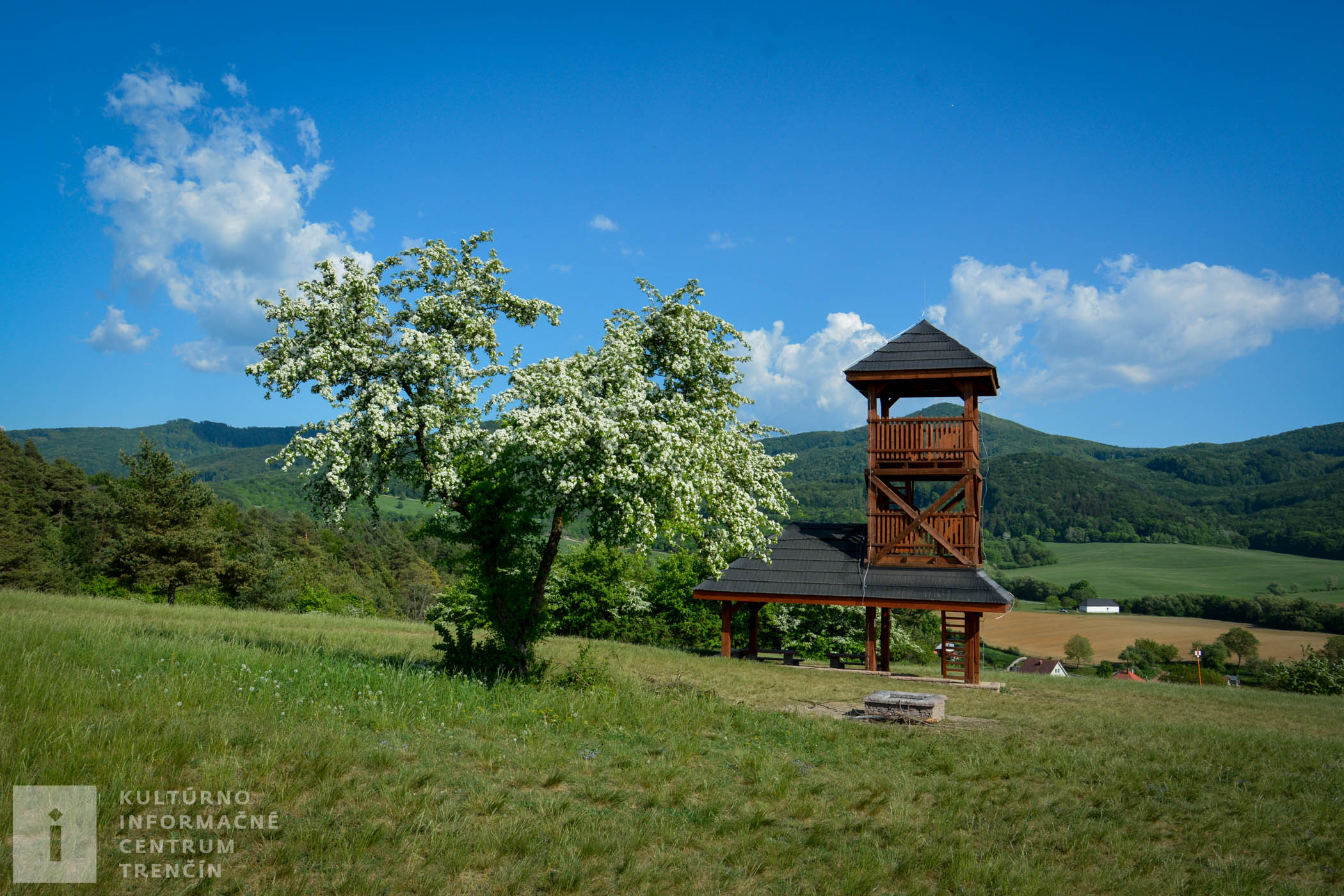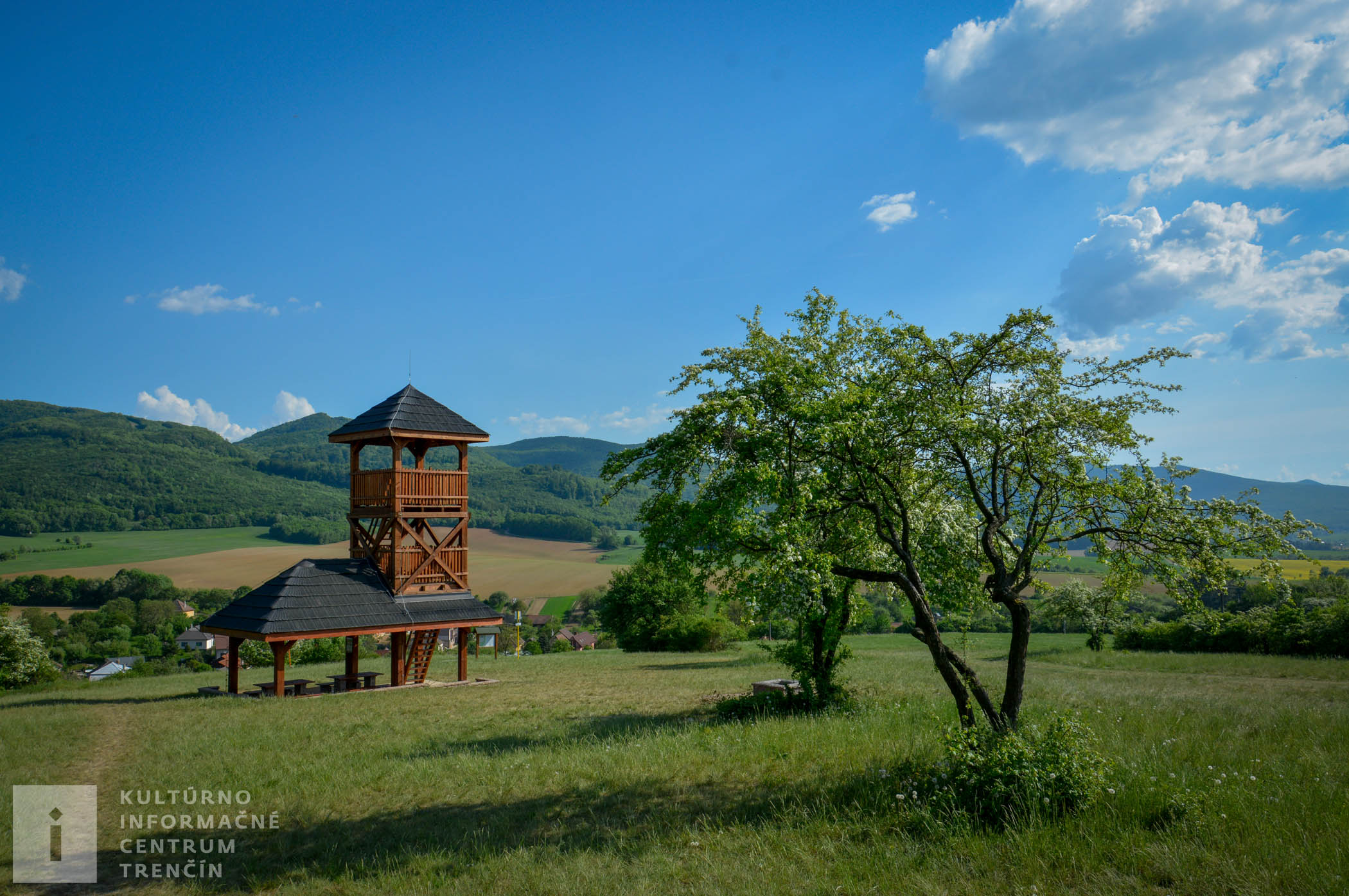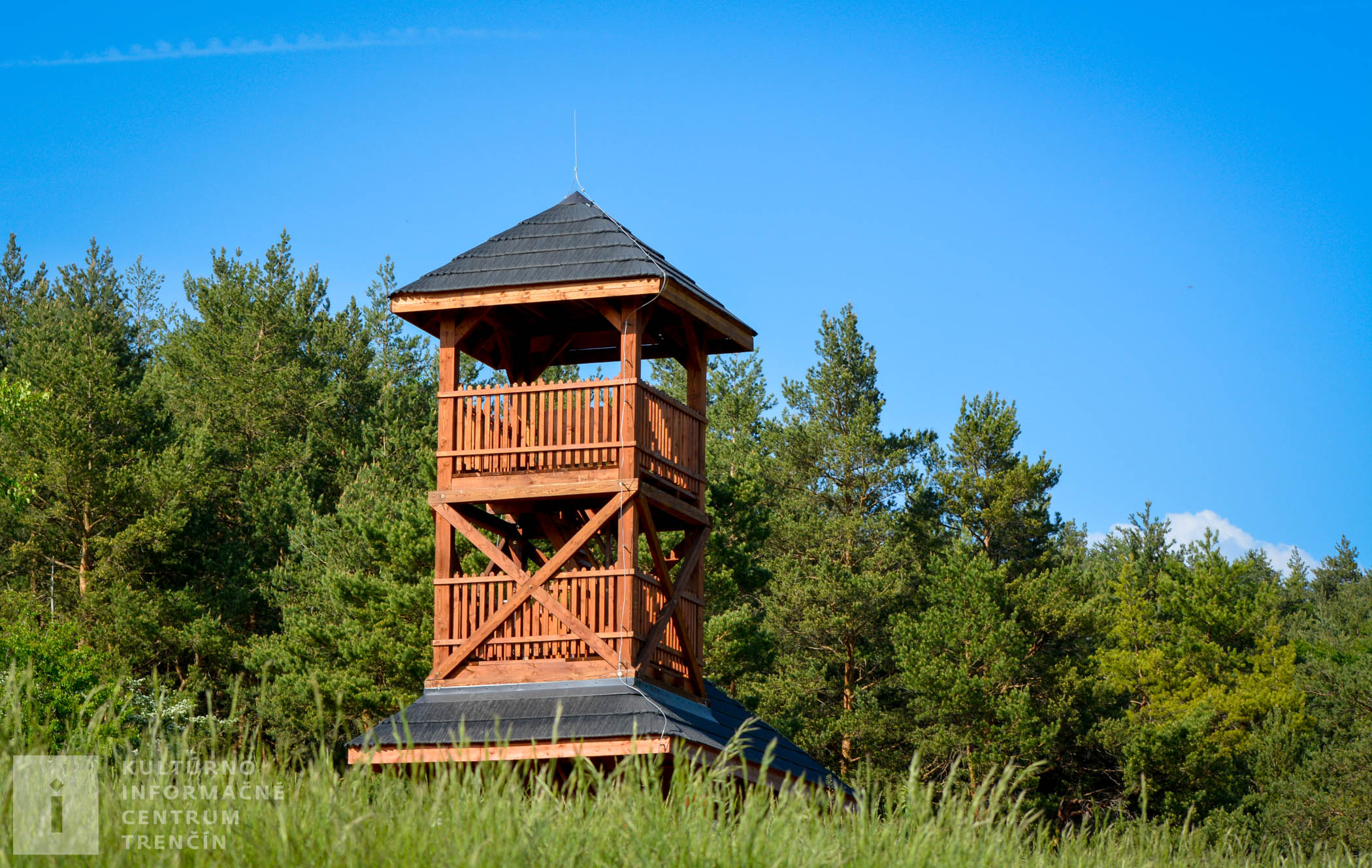 Drevená stavba z diaľky pripomína kostolík s vežičkou, no až keď sa k nej priblížite, zistíte, že ide o dvojpodlažnú 9,5 metrovú vyhliadku, z ktorej sa vám naskytnú ukážkové zábery. Ako na dlani budete mať Považský Inovec, Biele Karpaty, Strážovské vrchy, ako aj okolité obce Trenčiansku Turnú, Mníchovu Lehotu, Trenčín či Nové Mesto nad Váhom.
