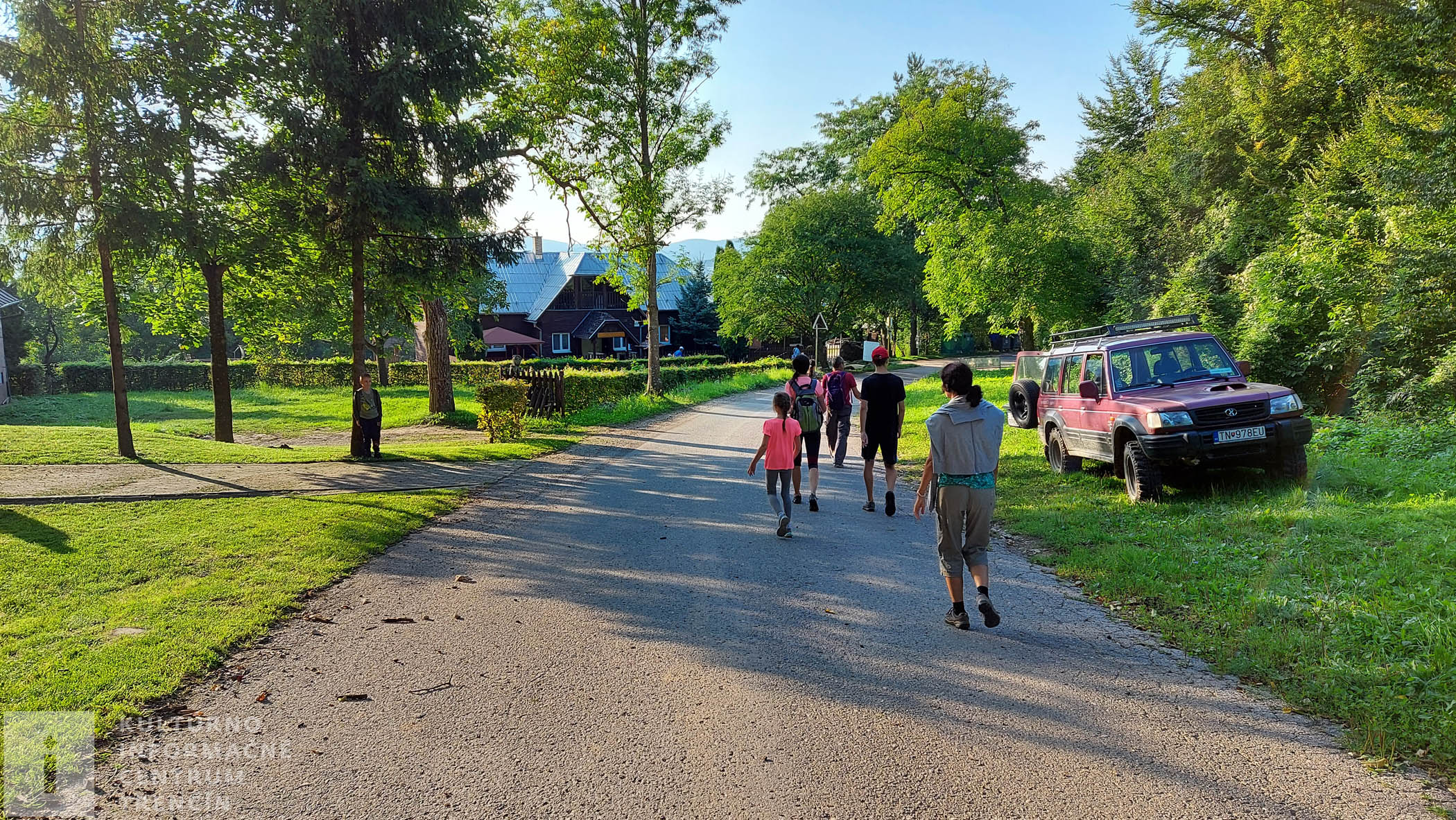 Zaujímavé je, že najviac do kopca znovu vládzu deti. Aj to je náš cieľ na výletoch – nech si aj zašportujeme, nadýchame čerstvého vzduchu a nech sa deti dosýta vyjašia 🙂 Lesná cesta zrazu končí a my vychádzame na asfaltku, po ktorej sa na chatu vezú „motorizovaní turisti“.