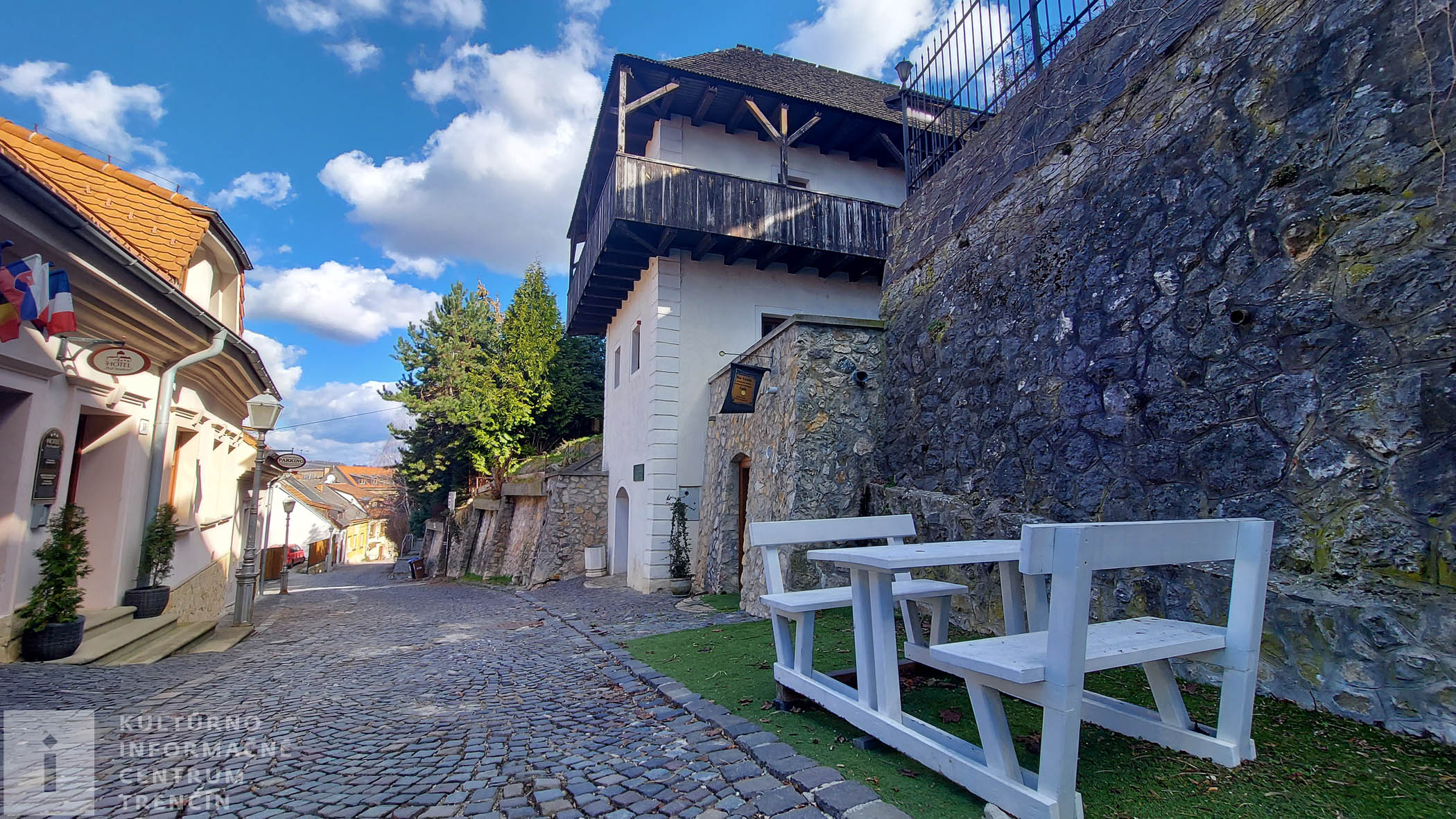 Okolo Katovho domu prechádzame po dlažobných kockách, ktoré niektorí volajú aj mačacie hlavy. Smerujeme ku kostolu a ku peknej vyhliadke na celé staré historické centrum mesta. Toto miesto pri kostole sa volá Mariánske námestie. Okolo Karnera po šikmej plošinke vychádzame úzkym priechodom von z hradieb mesta a sme zrazu v lese.