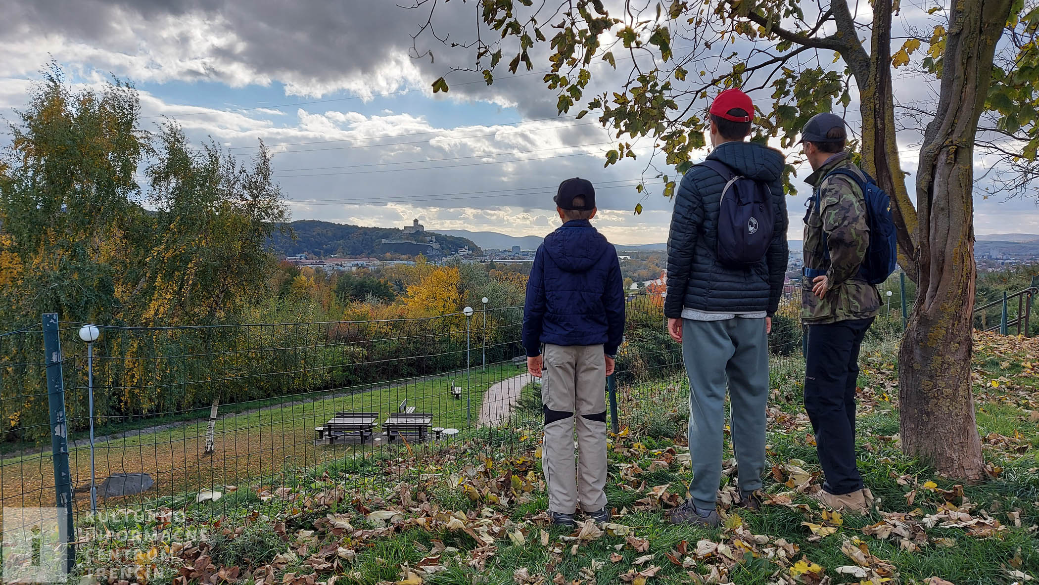 Autom sa dopravíme do Zamaroviec a zaparkujeme na konci Zamarovskej ulice pri predajni komínových systémov. Odtiaľto sa ide „pešibusom“. Do kopca vykračujeme po asfaltovej ceste a prechádzame okolo vodárne, odkiaľ je obec Zamarovce zásobovaná pitnou vodou. Prichádzame k čerpacej stanici. Na chvíľu odbočíme z našej trasy – prejdeme bráničkou do areálu pumpy, dookola obídeme jej budovu a zrazu sa pred nami objaví krásny výhľad na celý Trenčín. Skutočne sa tu oplatí zastaviť a poobzerať si naše pekné mesto.