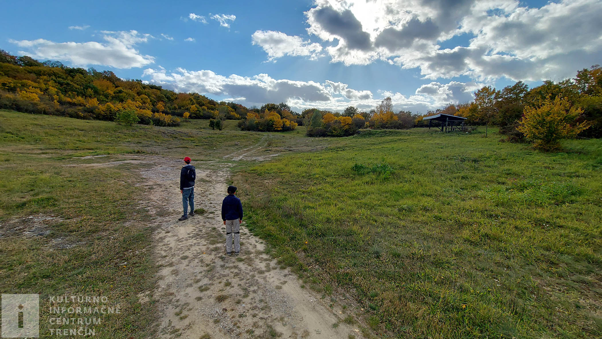 Na tomto tajomnom mieste sa cítime veľmi zvláštne, akoby nás niekto pozoroval. Zrazu sa z húštin začne ozývať hlasné šuchotanie, okamžite sa balíme a pre istotu odchádzame. 🙂 Opúšťame lokalitu hradiska a po širokej lúke sa vraciame spať, smerom ku strelnici. Ako sa vzďaľujeme od upírskeho miesta, sme trošku pokojnejší. Užívame si krásnu prírodu navôkol. Slnko pomaličky zapadá a tak najlepšie vyniknú jesenné farby prírody.