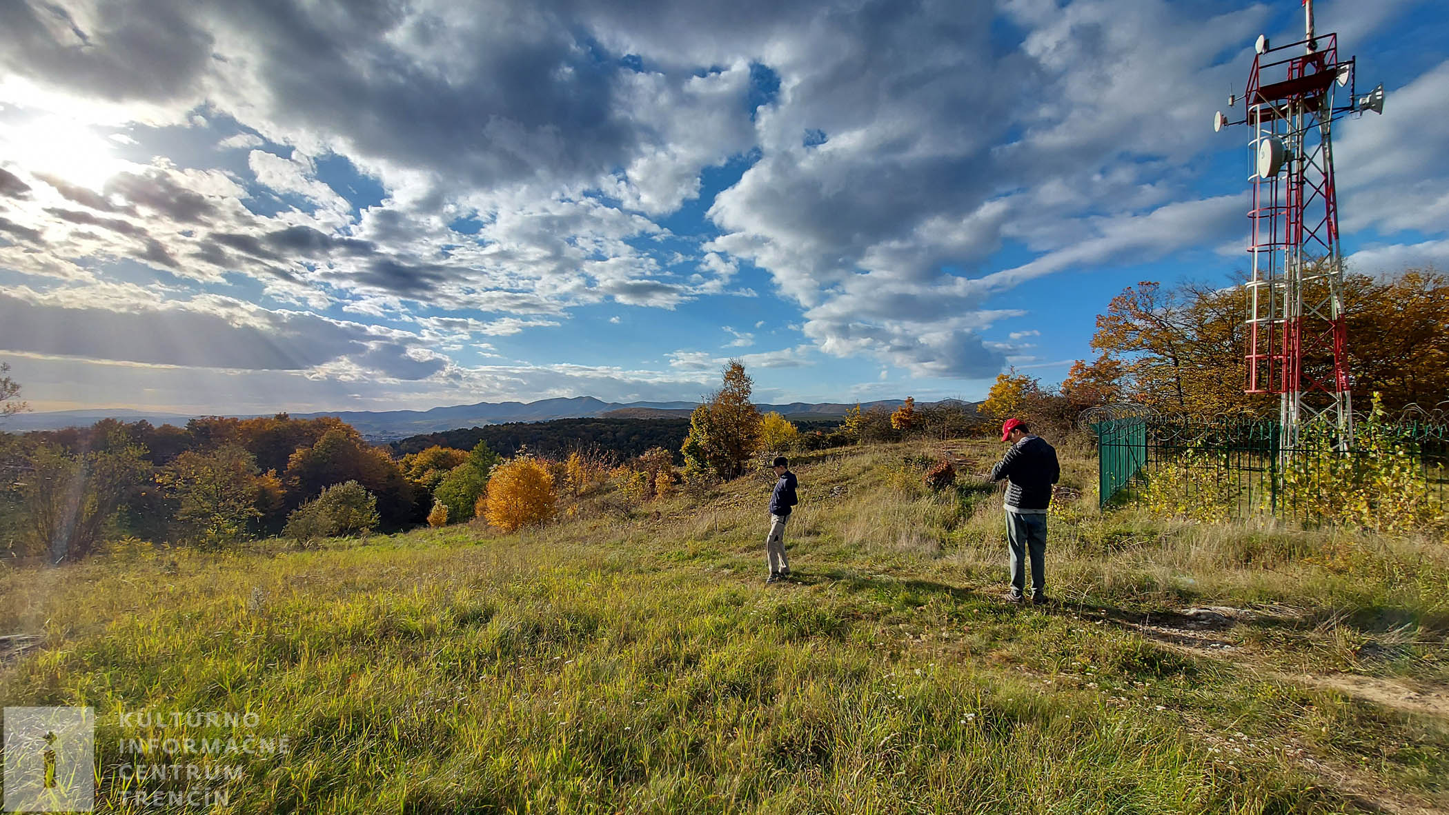 Prichádzame k vysielaču, odkiaľ je ohromujúci výhľad na strelnicu, na celú našu „arénu“ aj slnko na obzore. Ideálne miestečko na oddych. Pohodlne sa usadíme a zo zásob, ktoré máme, doplníme sily. Tu sa už nemáme čoho báť, neponáhľame sa, relaxujeme a robíme si zo seba žarty, ako sme sa na hradisku báli.