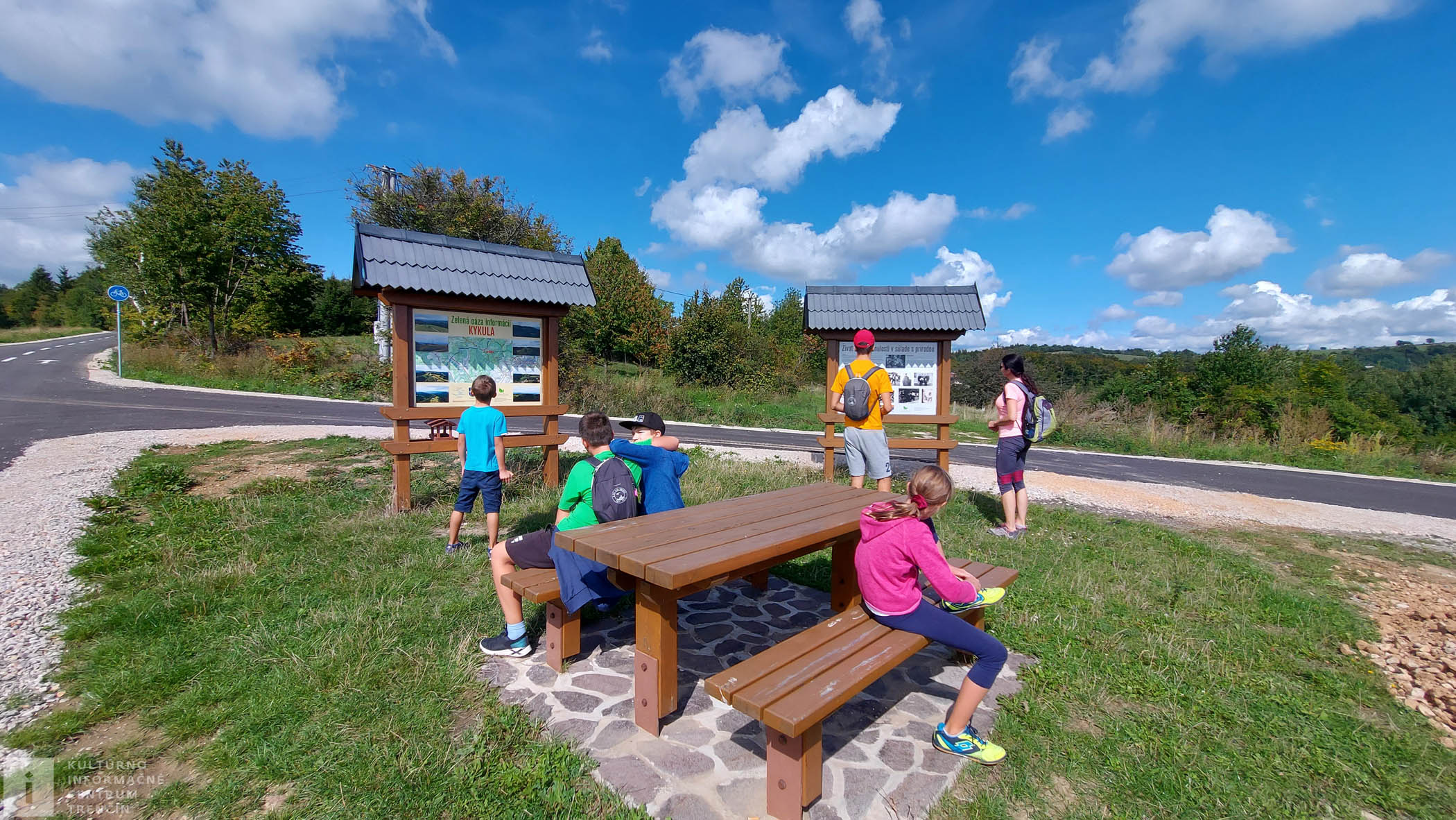 Sadáme do auta a už sa vezieme do Chocholnej. Okolo potoka Chocholnica sa rútime do kopca na Kykulu. Auto zaparkujeme pri ceste vedľa budovy bývalej školy. Bola to prvá kopaničiarska škola na Slovensku z roku 1903, kde sa učili deti z okolitých usadlostí roztrúsených po okolitých kopcoch a lazoch. Celé okolie je upravené, je tu vybudovaný posed, infotabule s mapou a s popisom histórie.