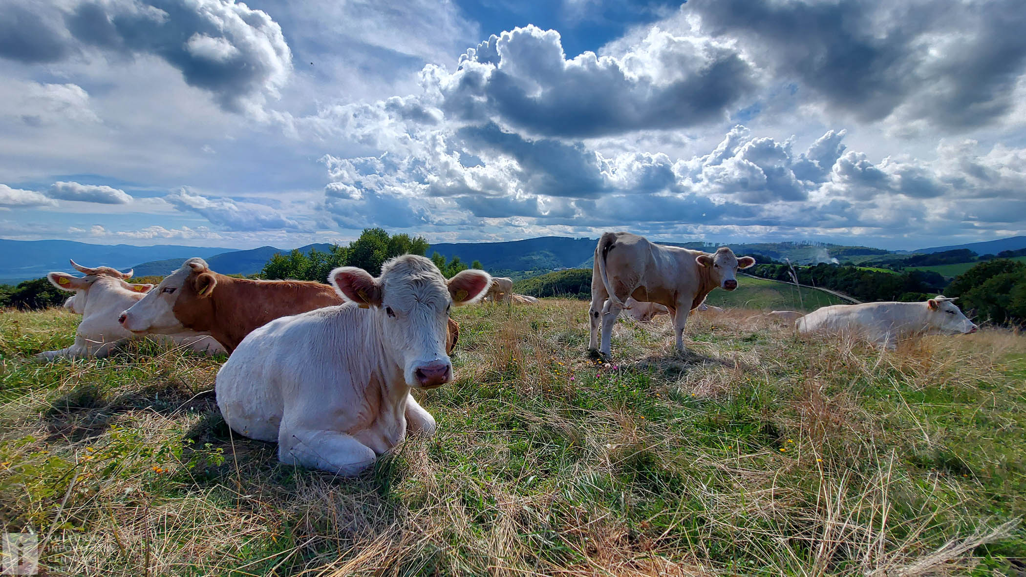 Po chvíli zatúžime po našom Slovensku, tak cez húštinku preskočíme na cestu k nám. Na našu cestu svieti viac slniečko ako na cestu susedom, tak sa nám po našej ide veselšie. Naraz sa ocitneme pri miestnych zvieracích hraničných strážcoch. Kravičky si nás obzerajú a očividne sa im páčime, lebo na nás šibalsky žmurkajú.