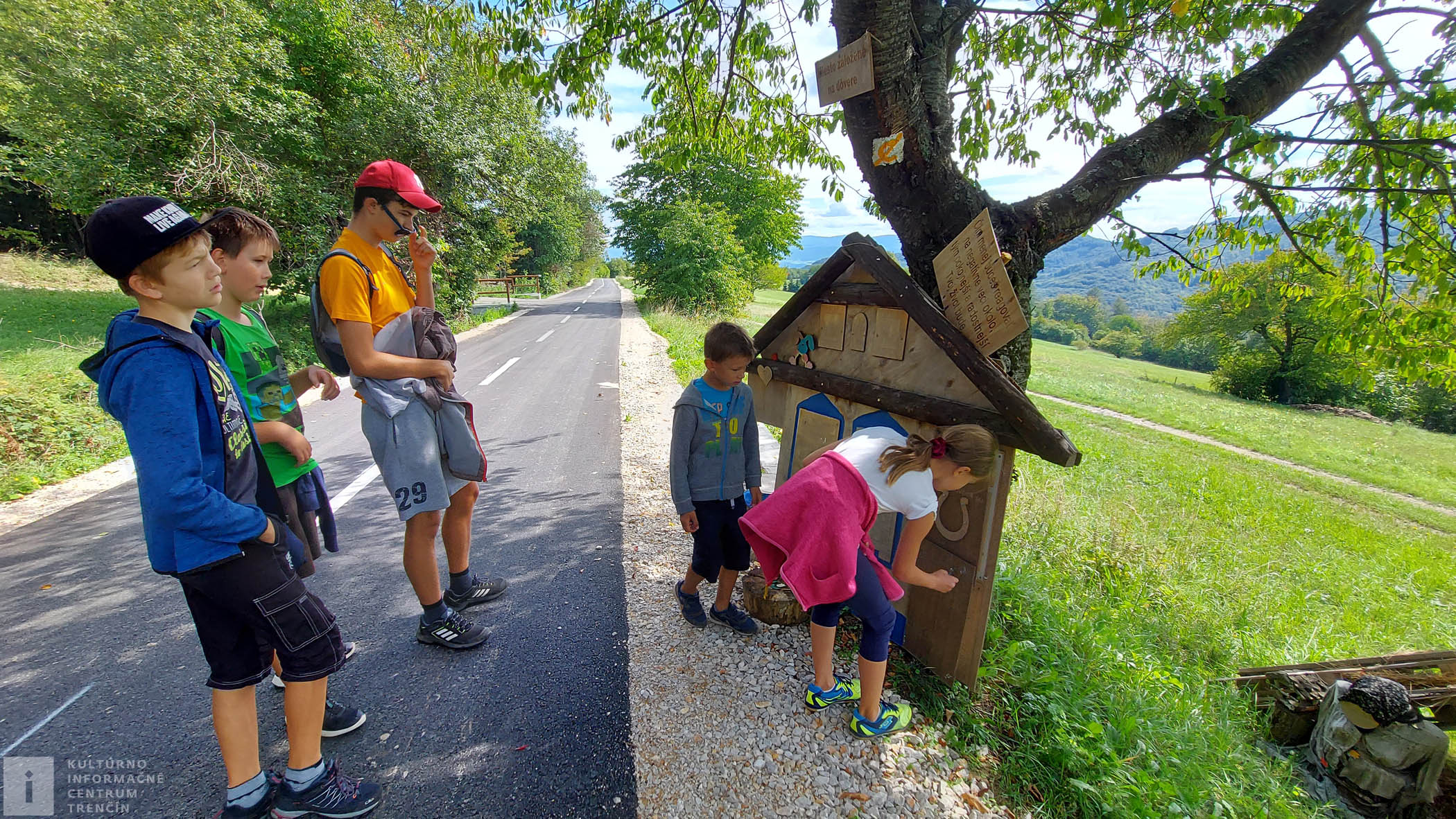 Hneď si všímame, že od našej minulej návštevy tejto oblasti tu pribudol nový parádny cyklochodník. S úsmevom sa dohovárame, že nabudúce sem prídeme na bajkoch, aby sme novú cestu otestovali. Vyrážame po nej smerom na štátnu hranicu. Sme totižto len doslova pár metrov od hranice s Českou republikou. Po chvíli sa pristavujeme pri samoobslužnej stanici – pri makete domčeku, kde si môžeme zobrať nejaké drobné občerstvenie a nechať zaň peniažky v kasičke. Veríme, že ľudia budú féroví a tento skvelý nápad tu vydrží navždy.